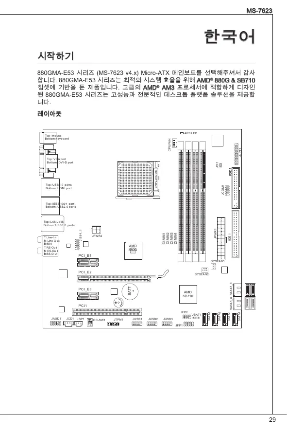 880GMA-E53 시리즈 (MS-7623 v4.x) Micro-ATX 메인보드를 선택해주셔서 감사