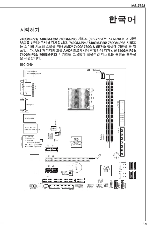 740GM-P21/ 740GM-P25/ 760GM-P33 시리즈 (MS-7623 v1.X) Micro-ATX 메인 보드를 선택해주셔서 감사합니다. 740GM-P21/ 740GM-P25/ 760GM-P33 시리즈
