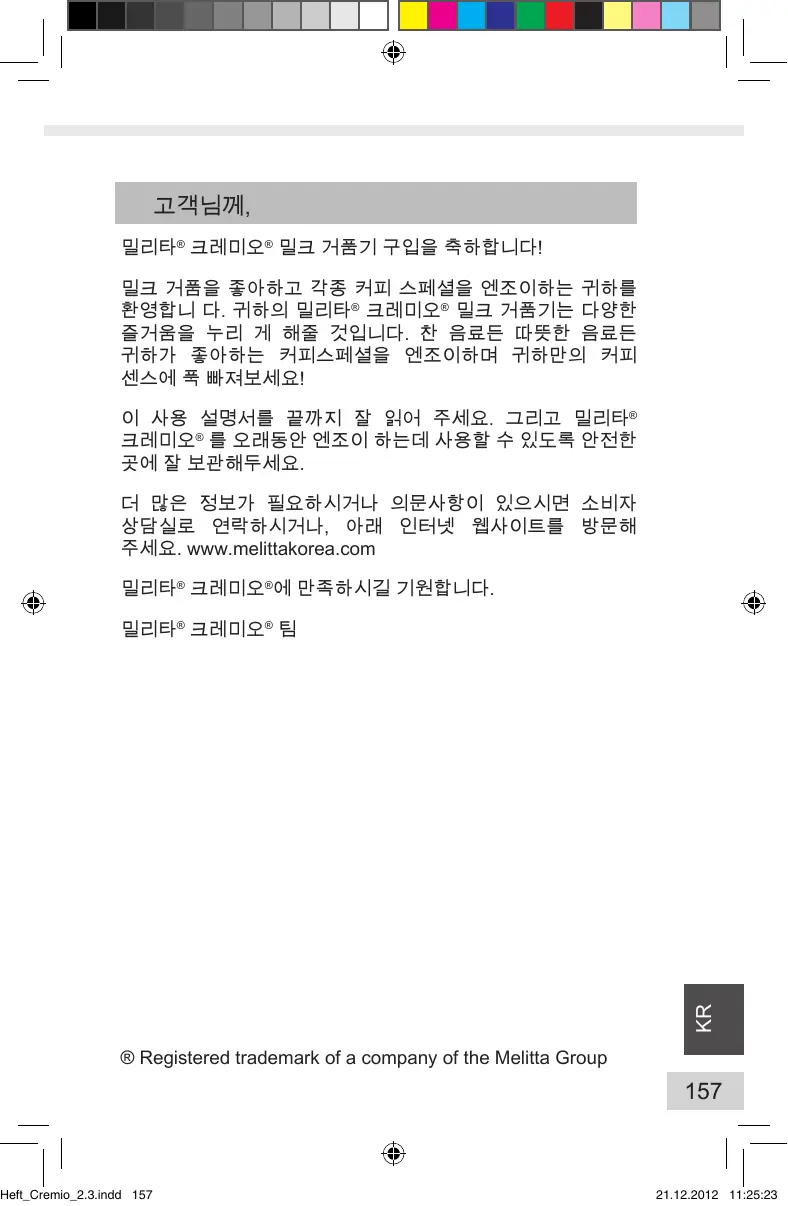 CREMIO - 커피 MELITTA - 무료 사용 설명서
