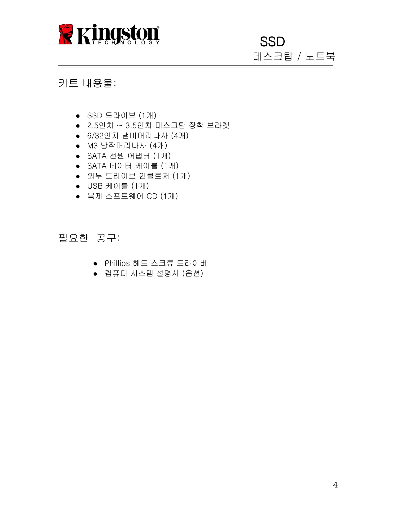 SH100S3 - 2.5인치 SSD KINGSTON - 무료 사용 설명서