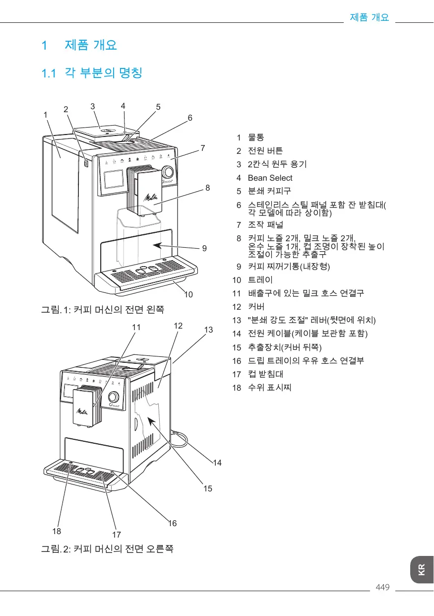 그림. 1: 커피 머신의 전면 왼쪽 11
