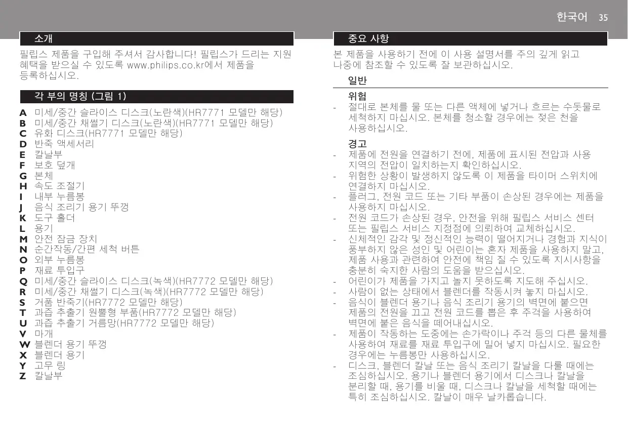 HR7771/53 - 주방용 로봇 PHILIPS - 무료 사용 설명서