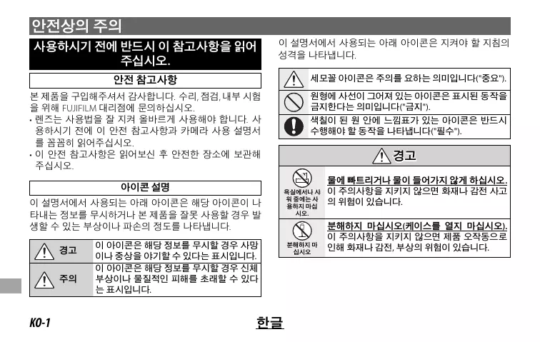 Nous vous remercions d’avoir acheté ce produit. Pour le faire réparer, inspecter ou tester, contactez votre représentant FUJIFILM. • Veillez à utiliser correctement votre objectif. Pour cela, lisez attentivement les consignes de sécurité suivantes ainsi que le Manuel du propriétaire avant de commencer à vous en servir. • Après avoir lu ces consignes de sécurité, rangez-les dans un endroit sûr.