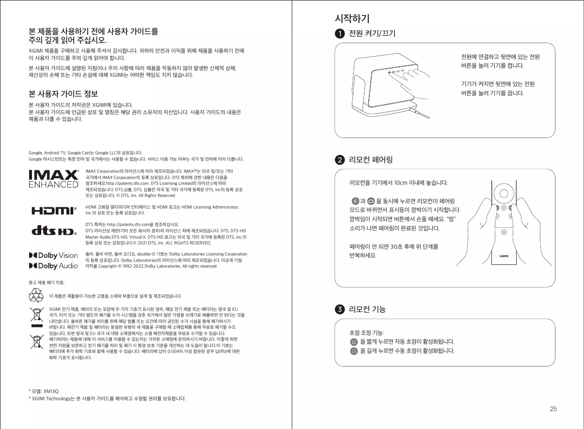 기기 매뉴얼을 무료로 찾기 HORIZON S MAX XGIMI PDF 형식.