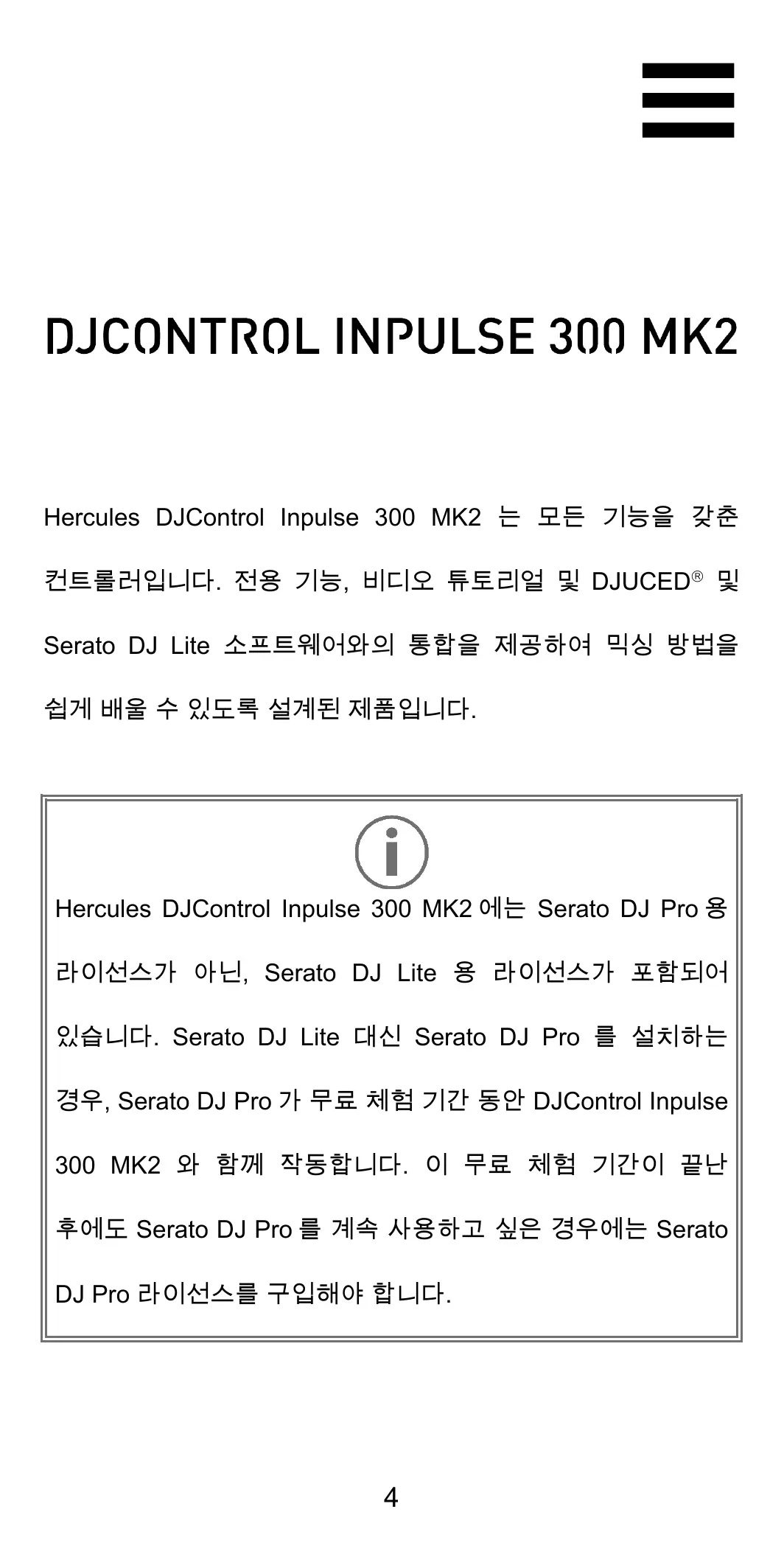 기기 설명서 다운로드 Contrôleur usb 무료 PDF 형식! 매뉴얼 찾기 INPULSE 300 MK2 - HERCULES 전자 기기를 다시 손에 넣으세요. 이 페이지에는 기기 사용에 필요한 모든 문서가 게시되어 있습니다. INPULSE 300 MK2 브랜드 HERCULES.