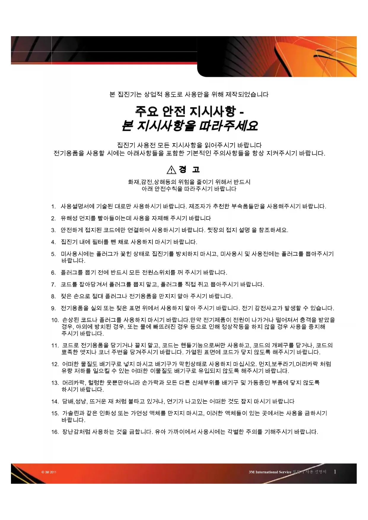 3M International Service 집진기 사용 설명서