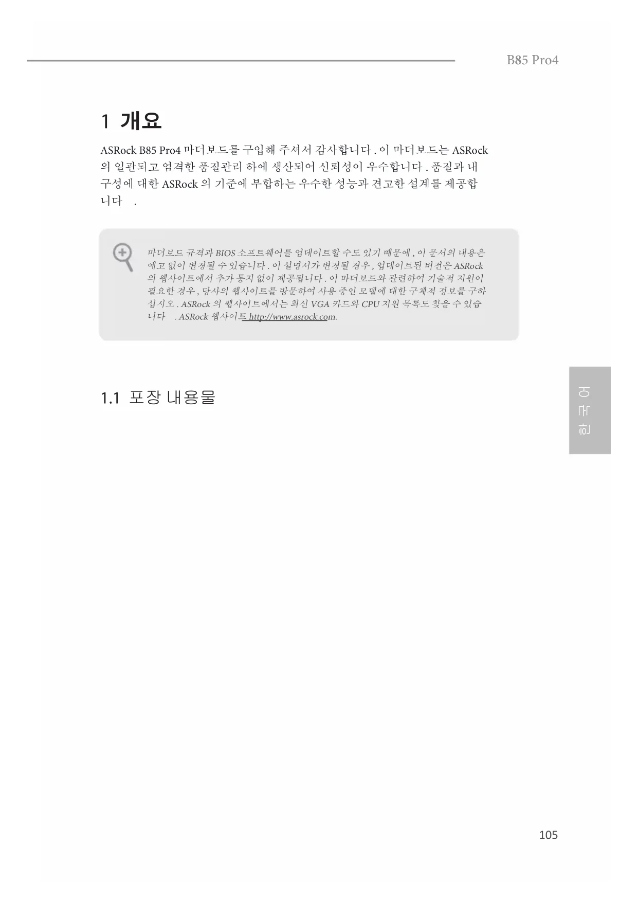 ASRock B85 Pro4 마더보드를 구입해 주셔서 감사합니다 . 이 마더보드는 ASRock