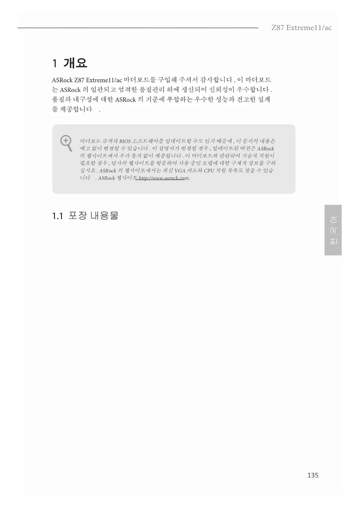 * 자세한 제품 정보에 대해서는 당사 웹사이트를 참조하십시오 : http://www.asrock.comZ87 Extreme11/ac