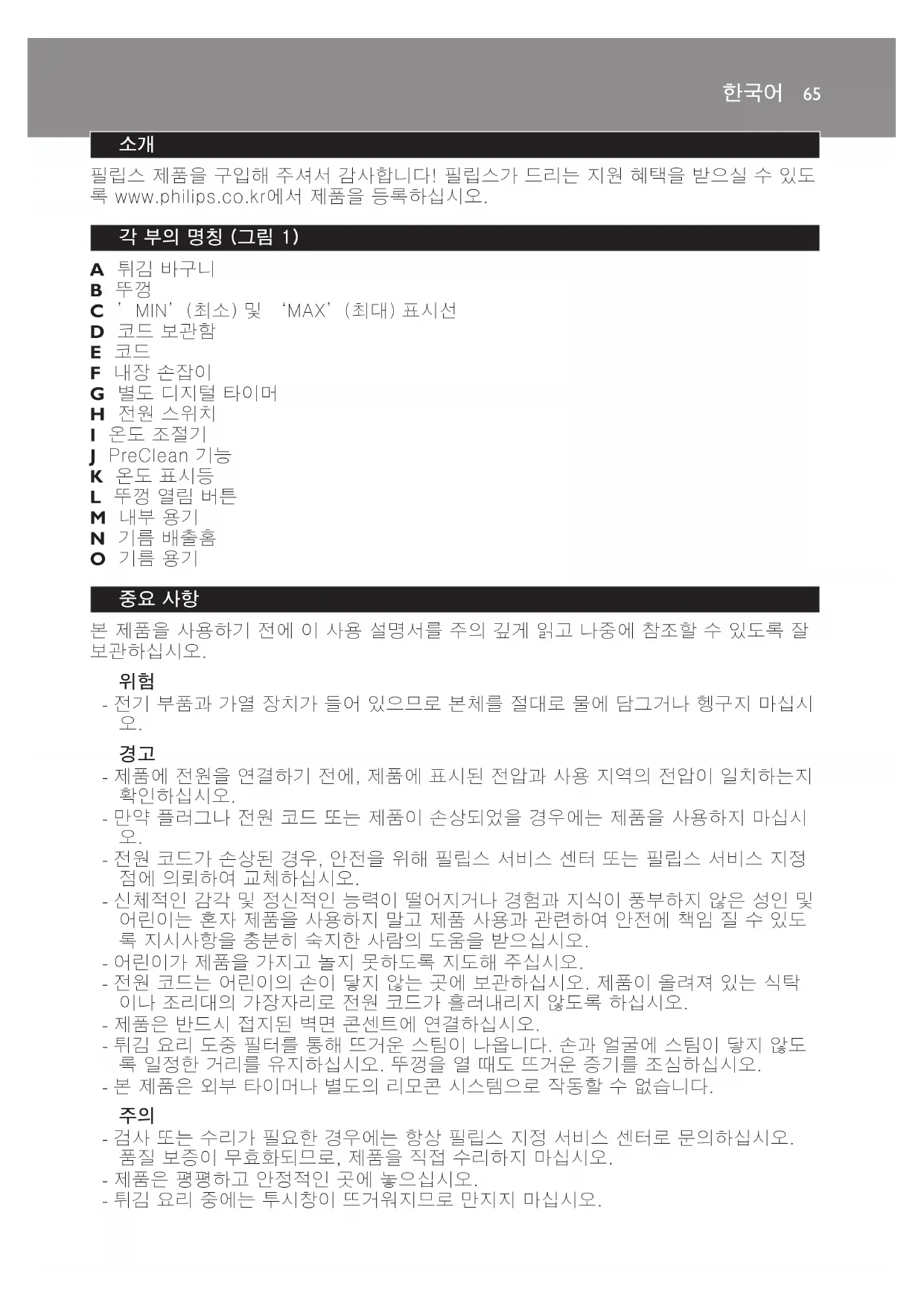 - 검사 또는 수리가 필요한 경우에는 항상 필립스 지정 서비스 센터로 문의하십시오.