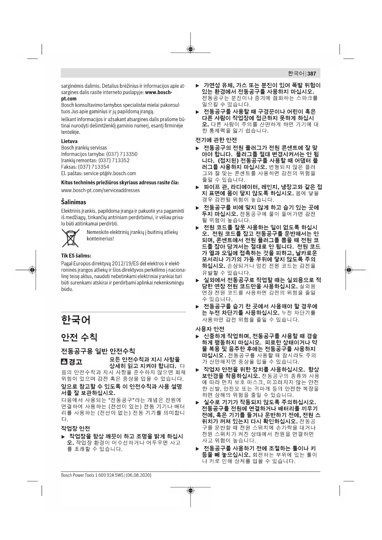 나 키로 인해 상처를 입을 수 있습니다. Bosch Power Tools 1 609 92A 5WS | (06.08.2020)388 | 한국어