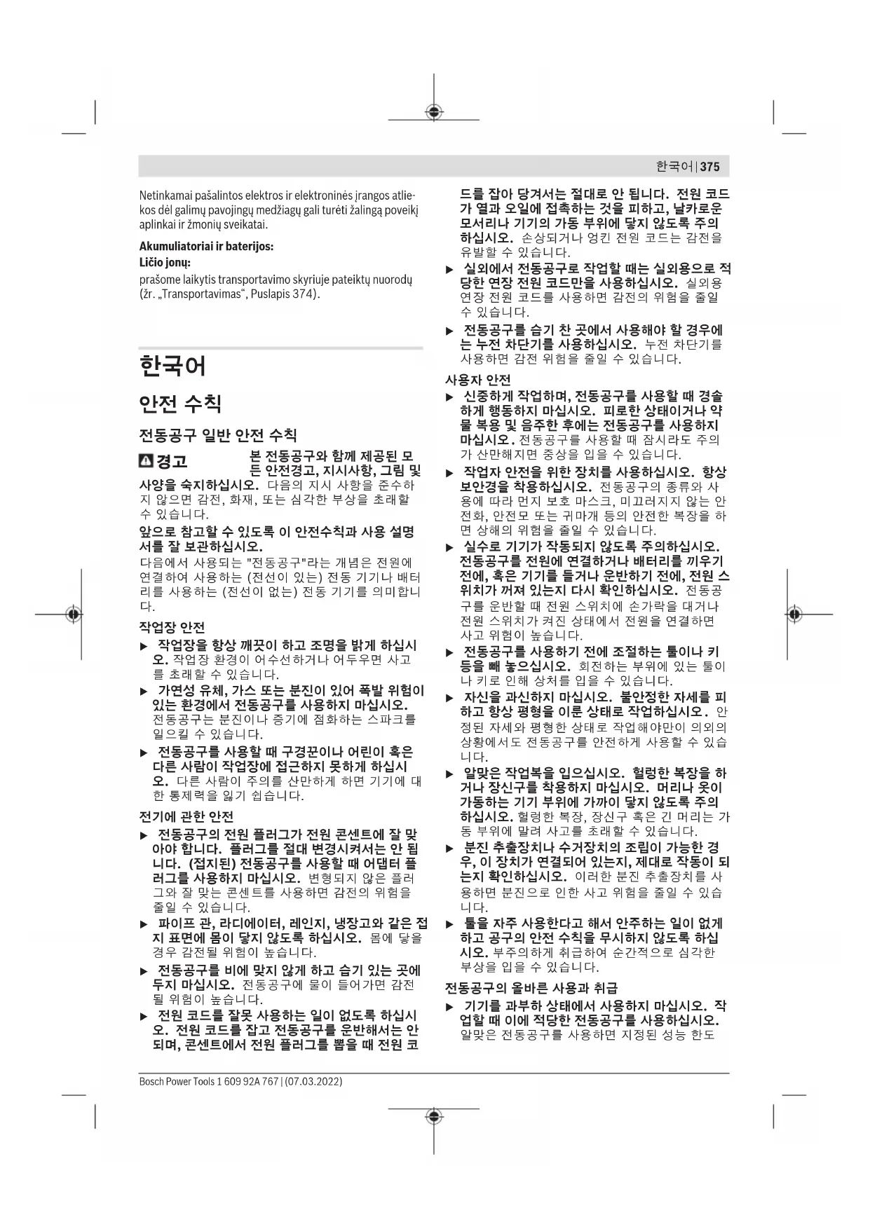 Bosch Power Tools 1 609 92A 767 | (07.03.2022)386 | 한국어