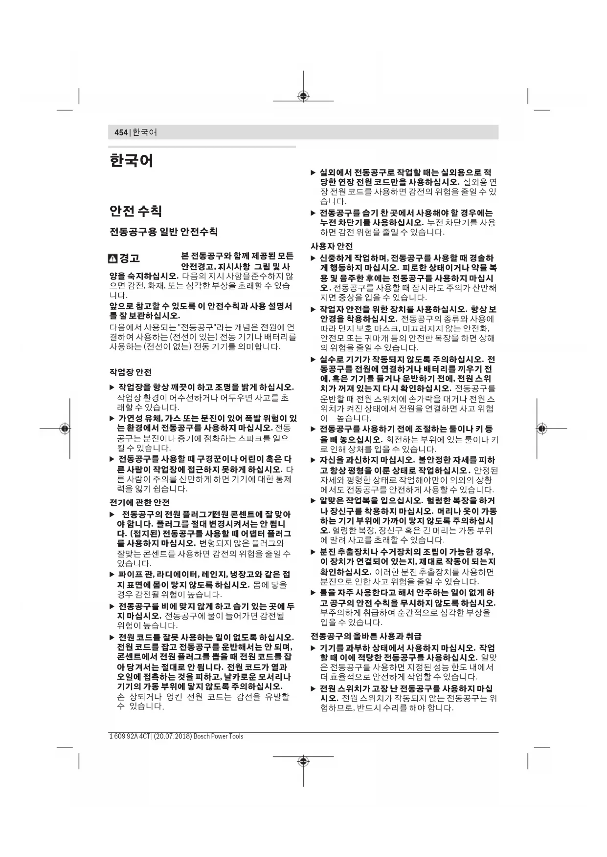 장 전원 코드를 사용하면 감전의 위험을 줄일 수 있 습니다. u 전동공구를 습기 찬 곳에서 사용해야 할 경우에는