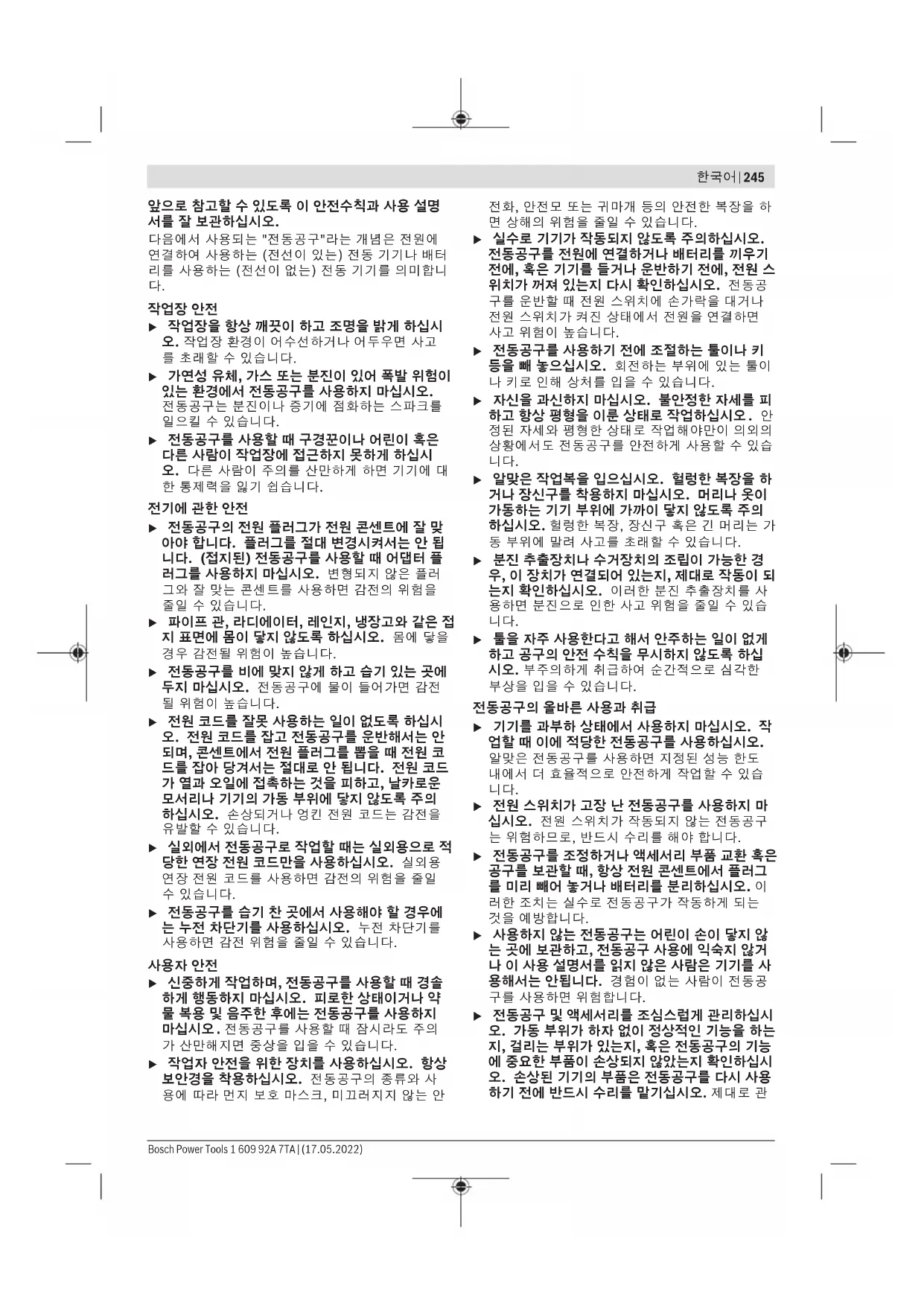 Bosch Power Tools 1 609 92A 7TA | (17.05.2022)252 | 한국어