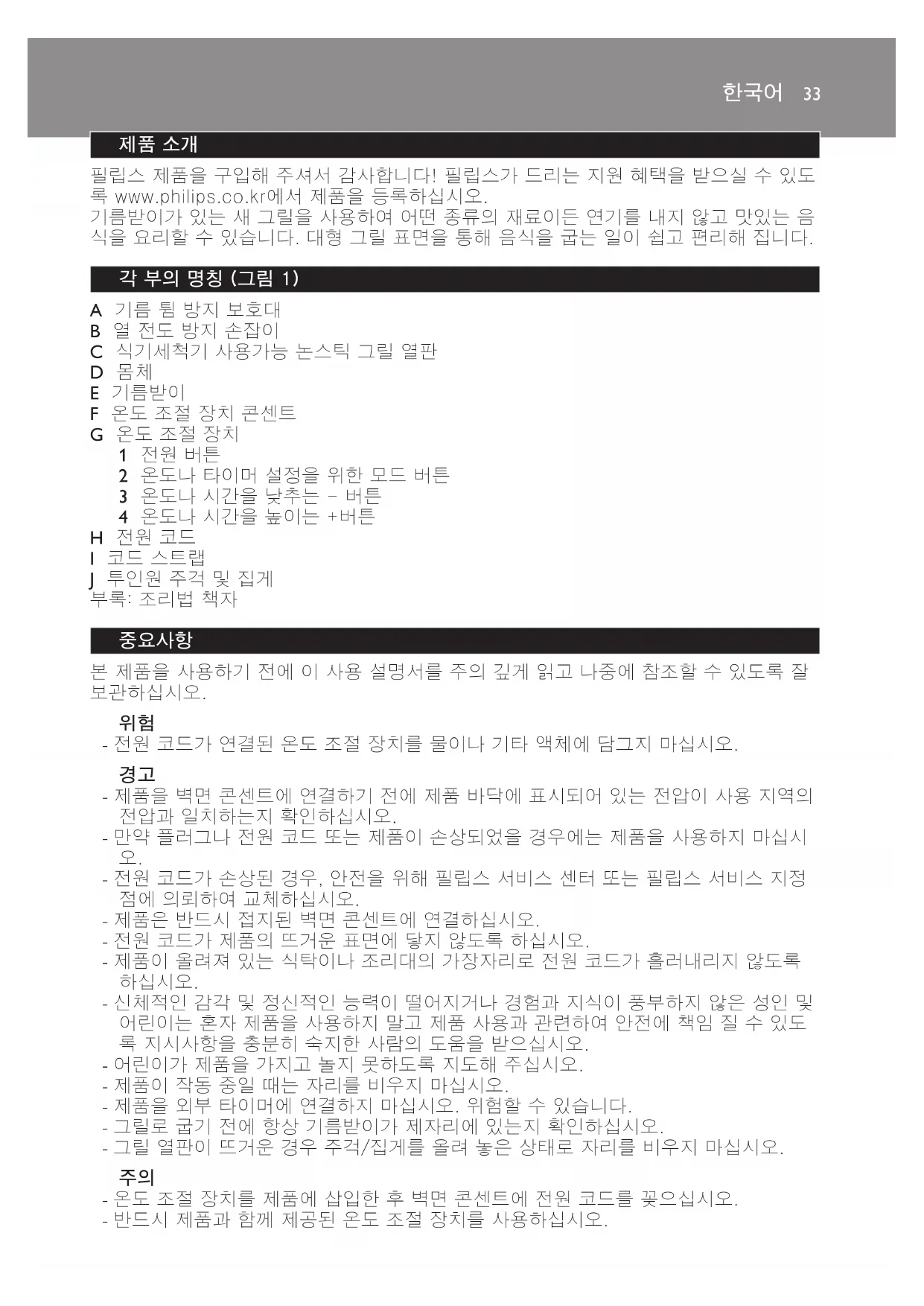philips.com/kitchen)에서 새로운 제품 정보를 얻을 수 있습니다.