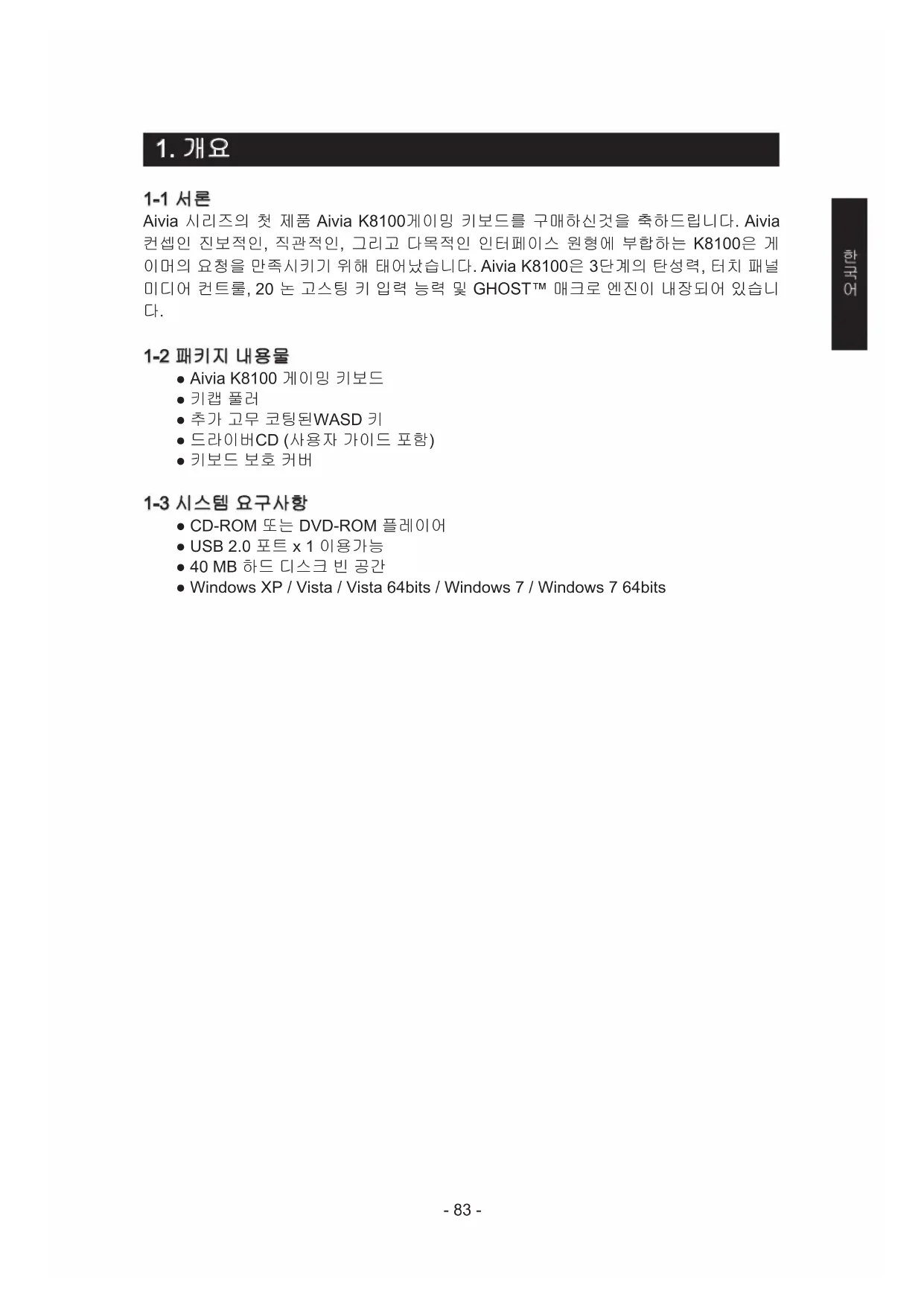 Aivia 시리즈의 첫 제품 Aivia K8100게이밍 키보드를 구매하신것을 축하드립니다. Aivia