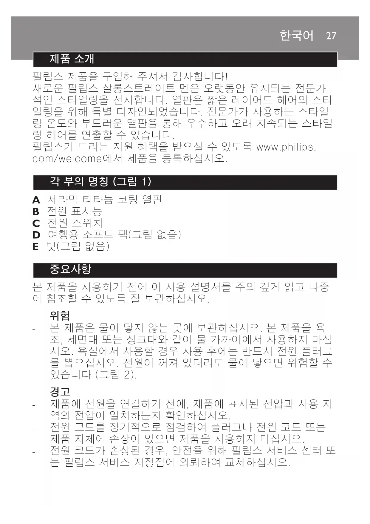 필립스가 드리는 지원 혜택을 받으실 수 있도록 www.philips.