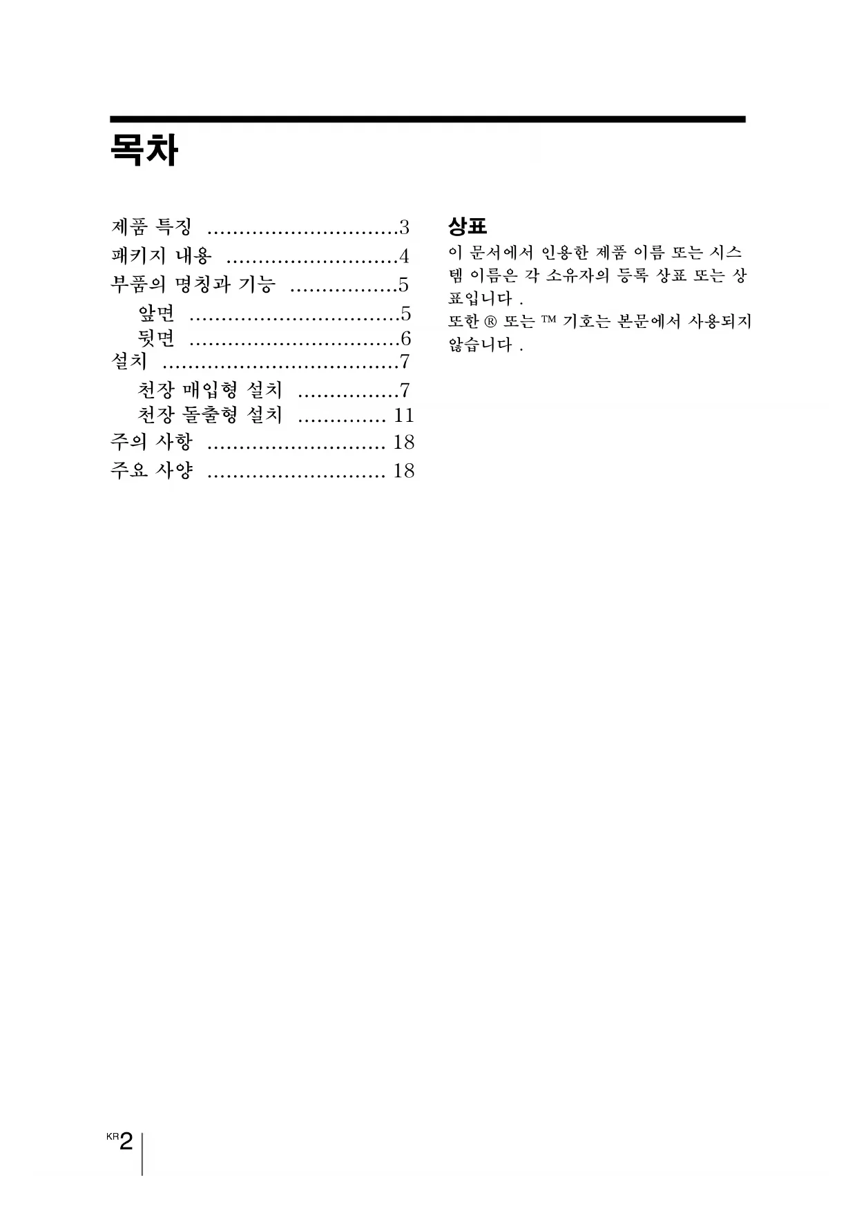 - 천장 매입형 설치 p. 7