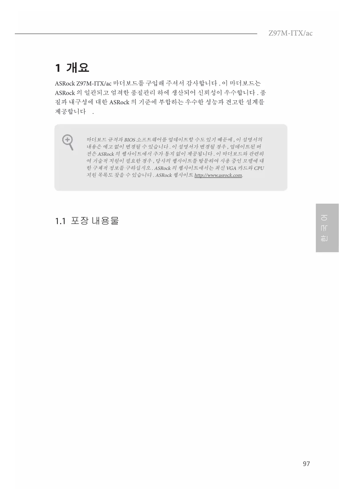 ASRock Z97M-ITX/ac 마더보드를 구입해 주셔서 감사합니다 . 이 마더보드는