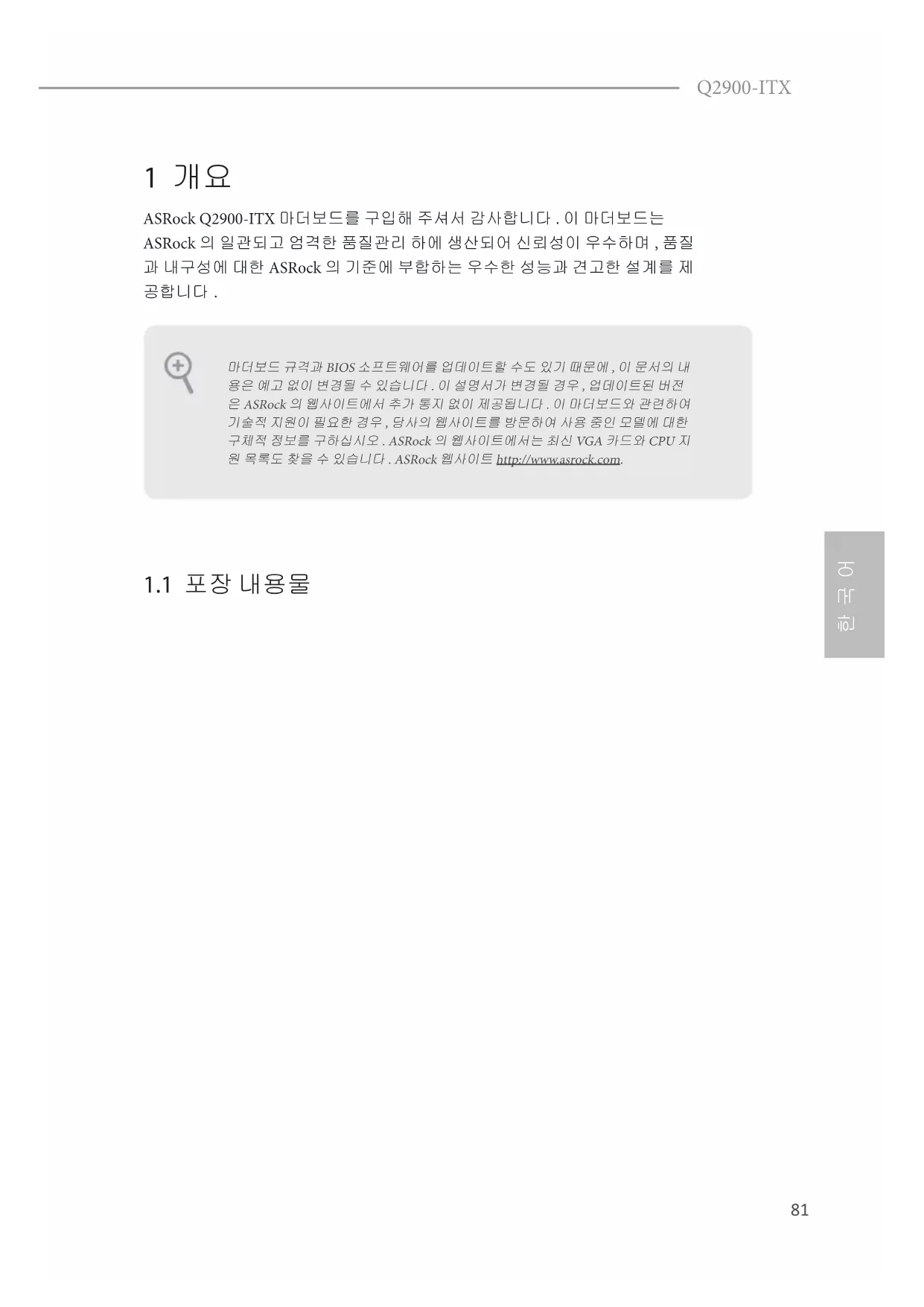 사용 설명서 Q2900ITX ASROCK