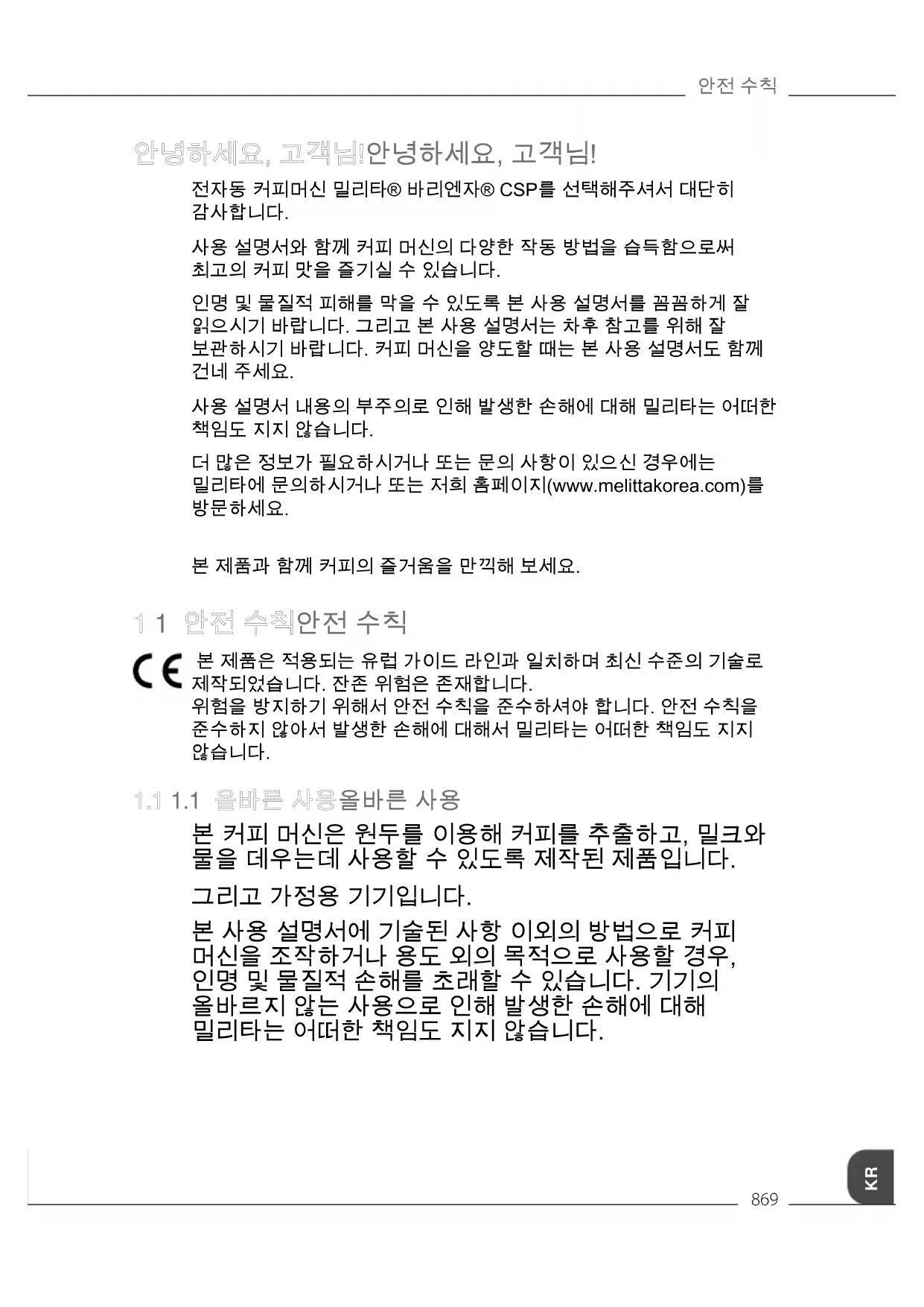 보관하시기 바랍니다. 커피 머신을 양도할 때는 본 사용 설명서도 함께