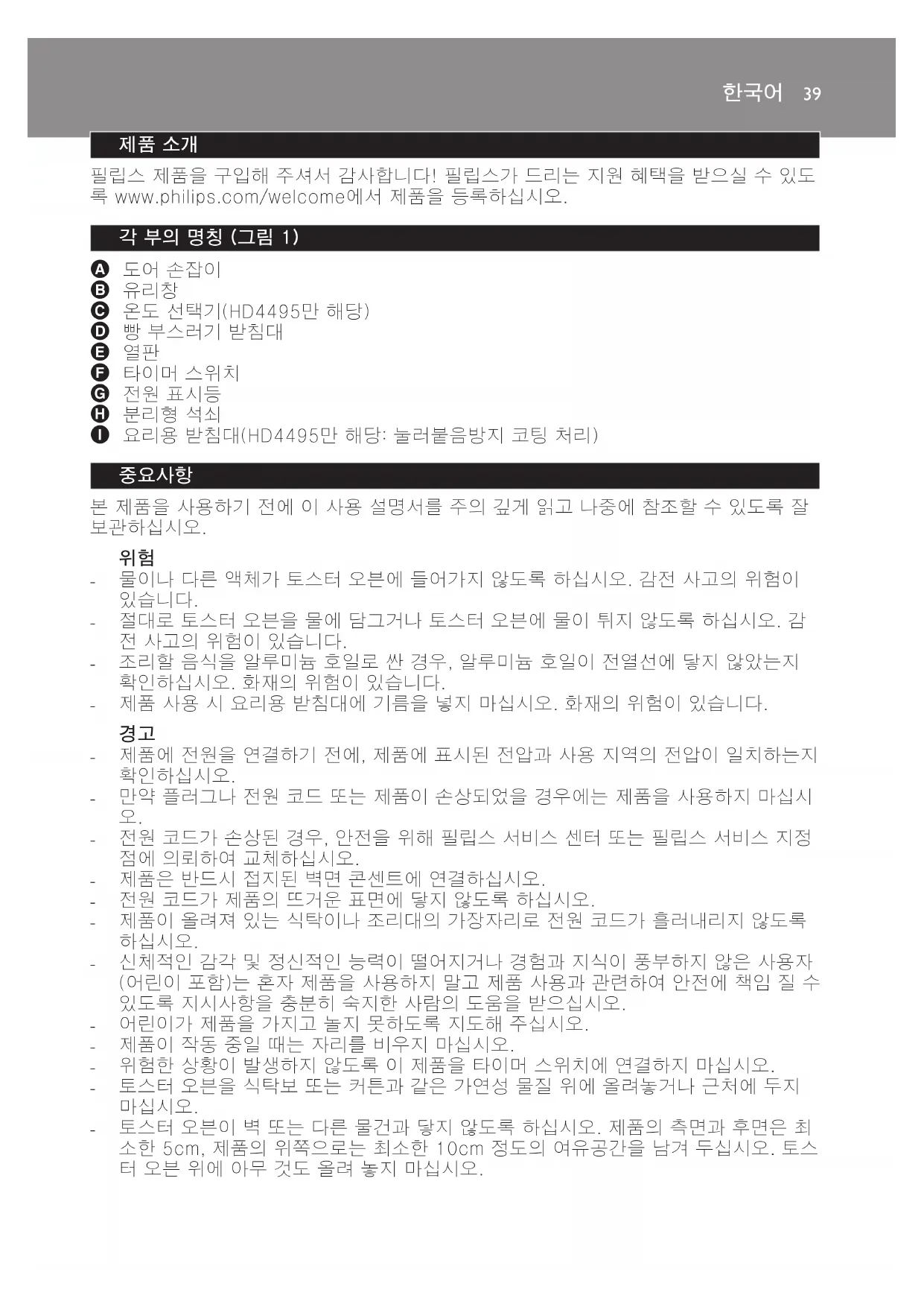 HD4493 - 토스터 PHILIPS - 무료 사용 설명서