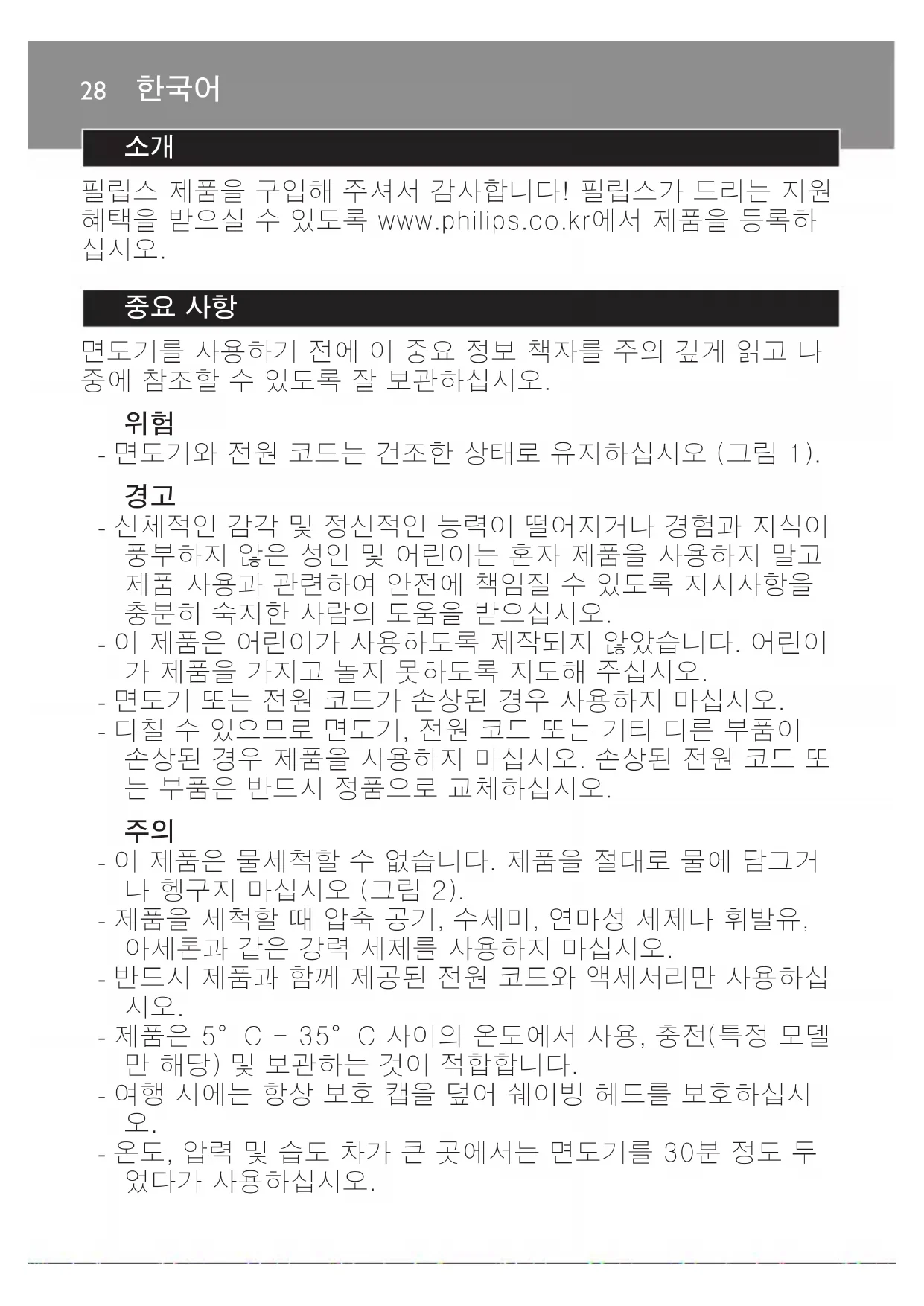 면도기를 사용하기 전에 이 중요 정보 책자를 주의 깊게 읽고 나