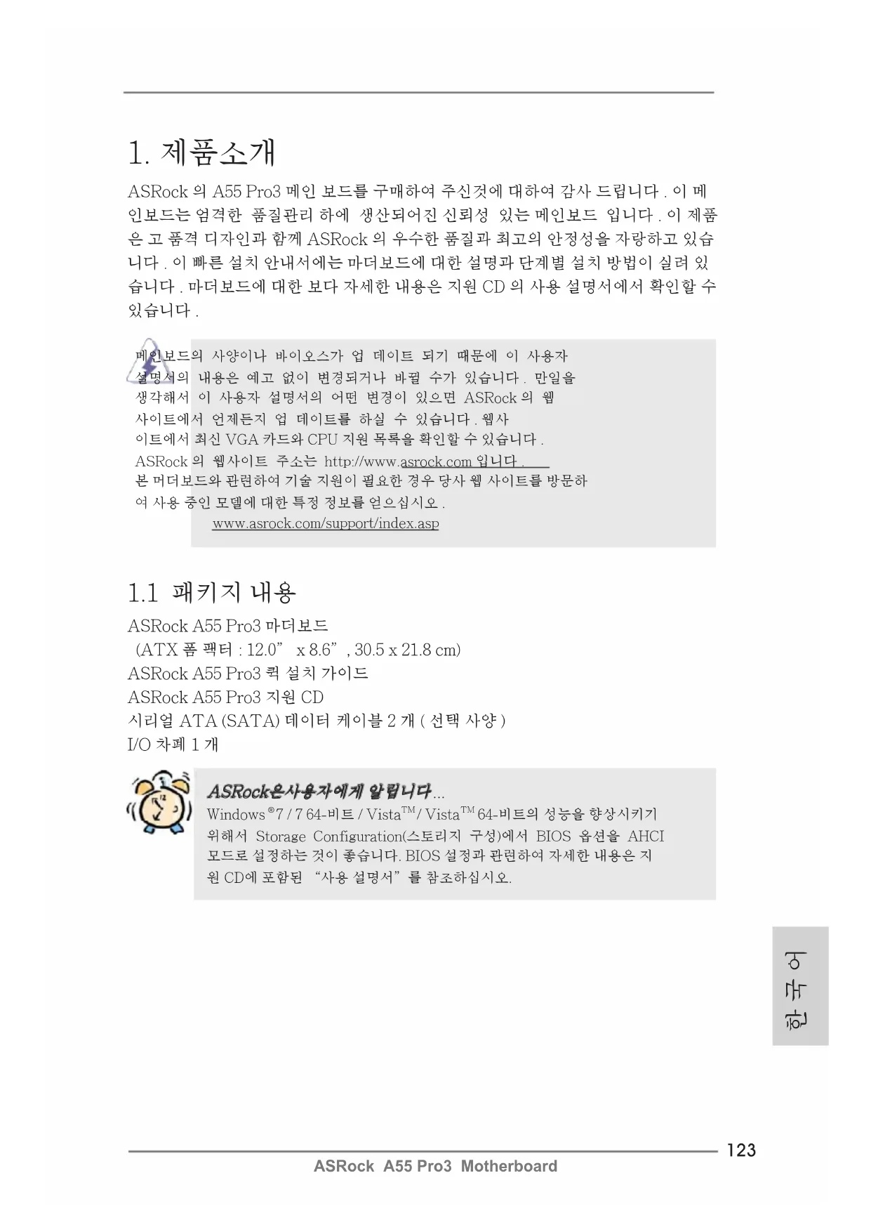 ASRock 의 A55 Pro3 메인 보드를 구매하여 주신것에 대하여 감사 드립니다 . 이 메