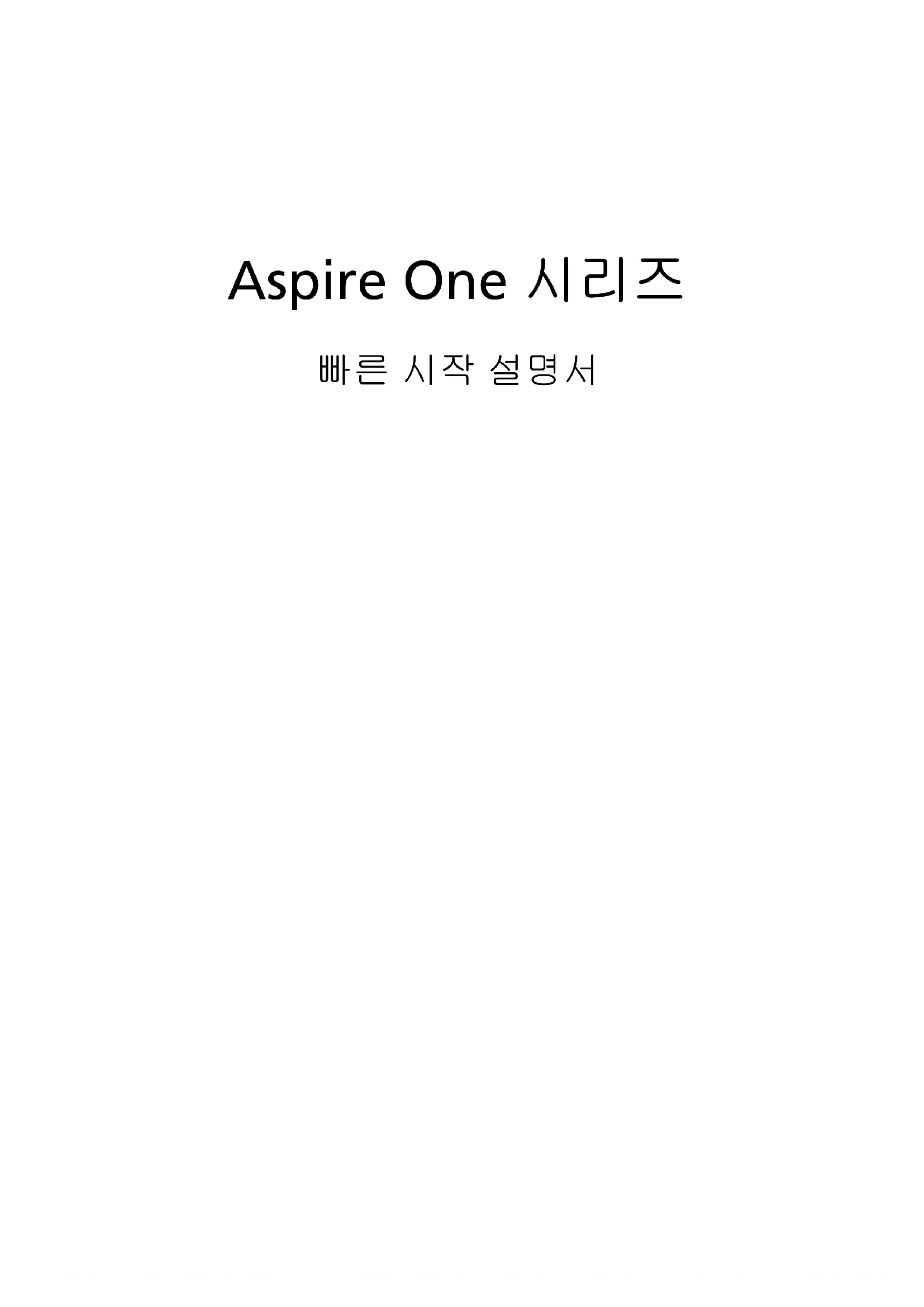 6Aspire One 시리즈 빠른 시작 설명서모델 번호 : ___________________________________ 일련 번호 : ___________________________________ 구입 날짜 : ___________________________________ 구입 장소 : ___________________________________ © 2010 All Rights Reserved. Aspire One 시리즈 빠른 시작 설명서 최초 발행일 : 11/2010 Aspire One 시리즈 노트북 PC3