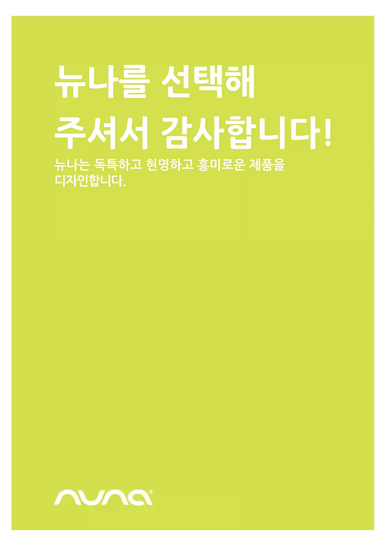 뉴나 이비의 품질보증기간은 1년입니다. 품질보증기간 내에 제품에 결함이 있을 경우 구매하신 곳으로 연락하여 주십시오. 구매처에서 도움을 받을 수 없는 경우 뉴나 지역공급업체로 연락하여 주십시오. 품질보증과 관련된 사항을 처리하는데 필요한 모델명과 시리얼번호는 유모차 시트 아래, 요람 아래쪽을 확인하여 주십시오. 본 제품을 등록하기 위해 저희 웹사이트 nuna.eu를 방문하여 주십시오.