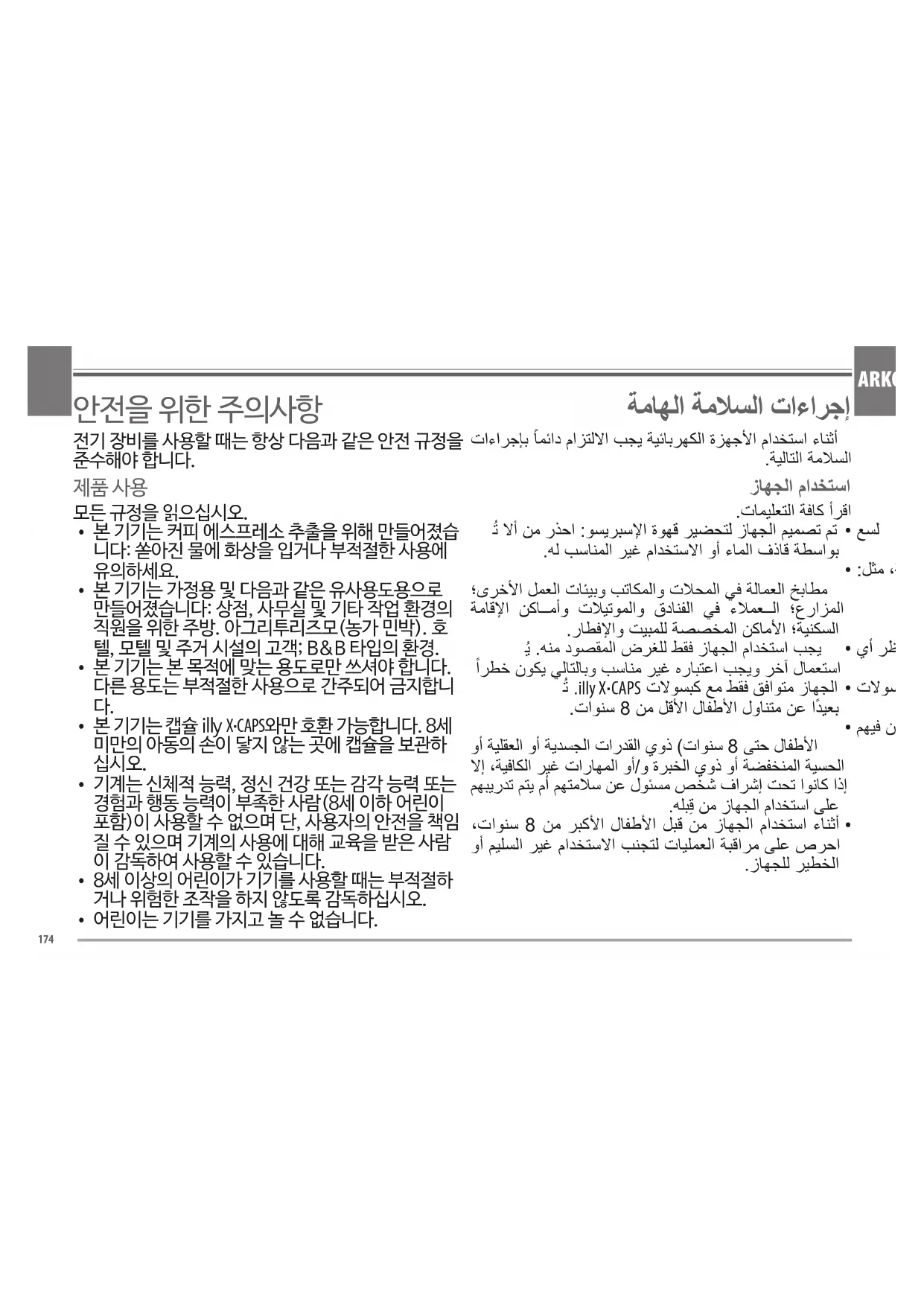 ARKO 기계 사용을 위한 규칙 사용 매뉴얼과 보증 제한 사항을 주의 깊게 읽으십