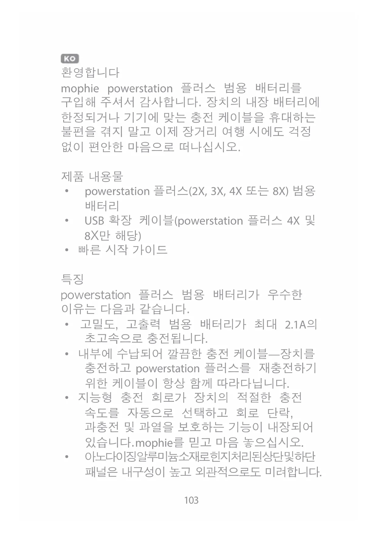 기기 설명서 다운로드 휴대용 배터리 무료 PDF 형식! 매뉴얼 찾기 powerstation plus 2X - Mophie 전자 기기를 다시 손에 넣으세요. 이 페이지에는 기기 사용에 필요한 모든 문서가 게시되어 있습니다. powerstation plus 2X 브랜드 Mophie.