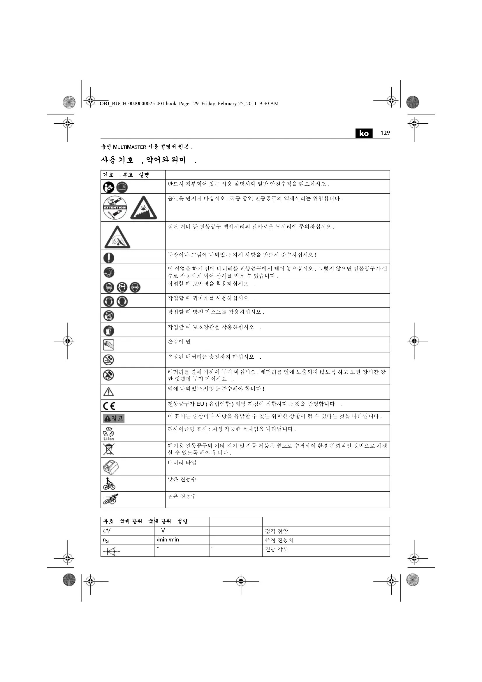 충전 MULTIMASTER 사용 설명서 원본 . 사용 기호 , 약어와 의미 .