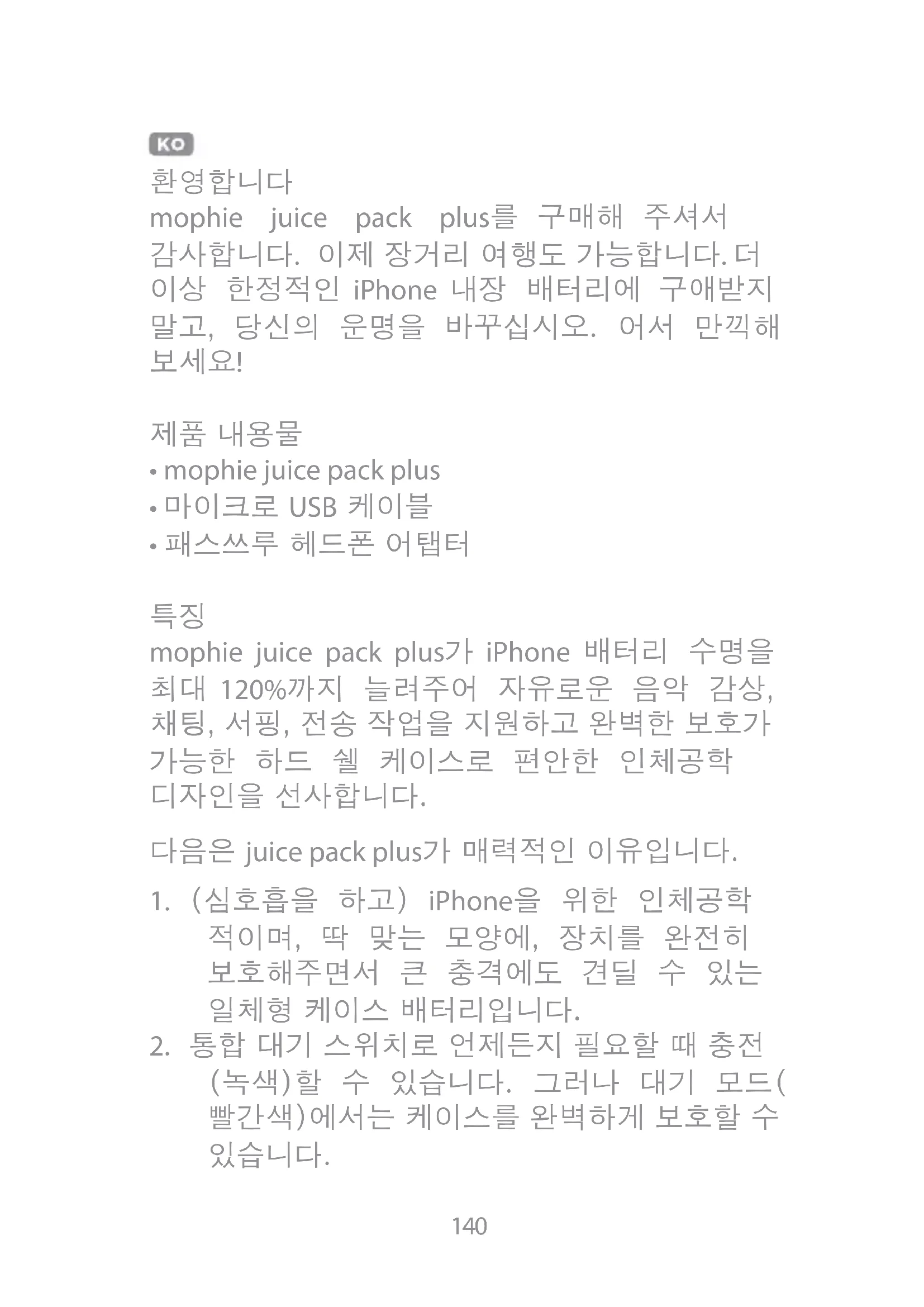 사용 설명서 Juice pack plus for iPhone 5(s) Mophie
