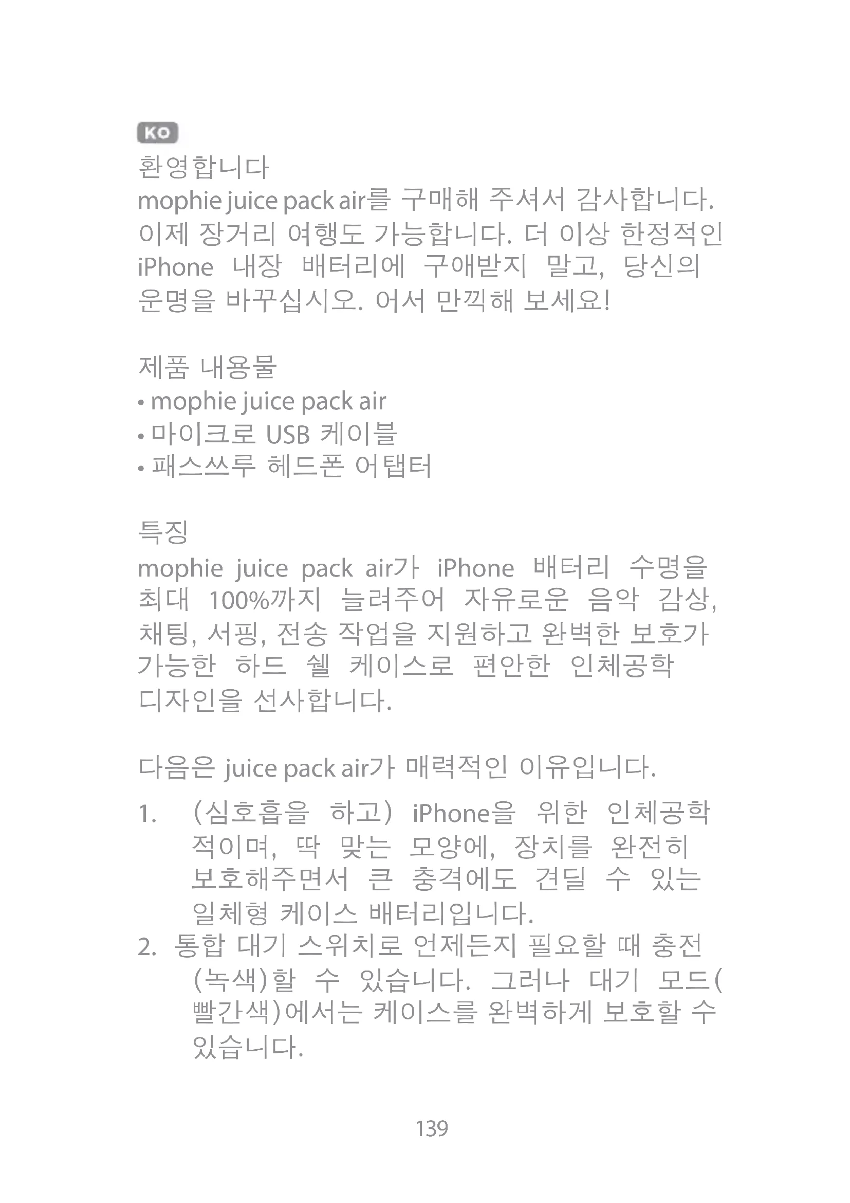 사용 설명서 Juice pack air for iPhone 5(s) Mophie