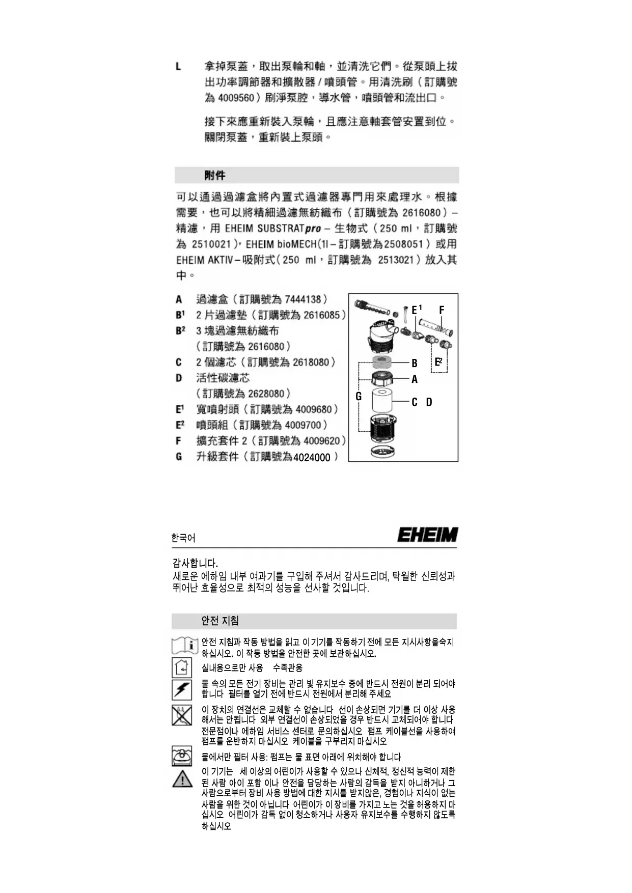 새로운 에하임 내부 여과기를 구입해 주셔서 감사드리며, 탁월한 신뢰성과 뛰어난 효율성으로 최적의 성능을 선사할 것입니다.