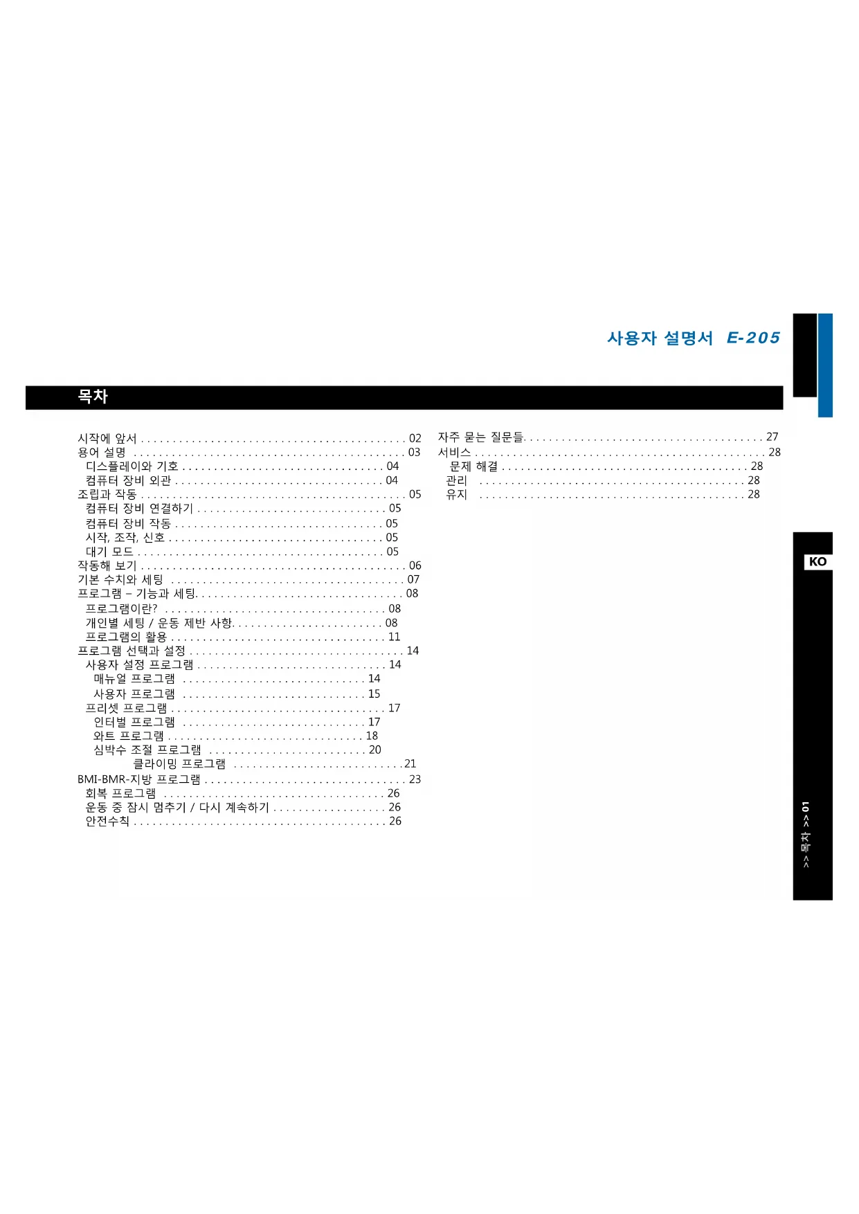 - 관리 28 유지 사용자 설명서 E-205 >> 목차 >> 01사용자 설명서 >> 시작에 앞서 >> 02 p. 28