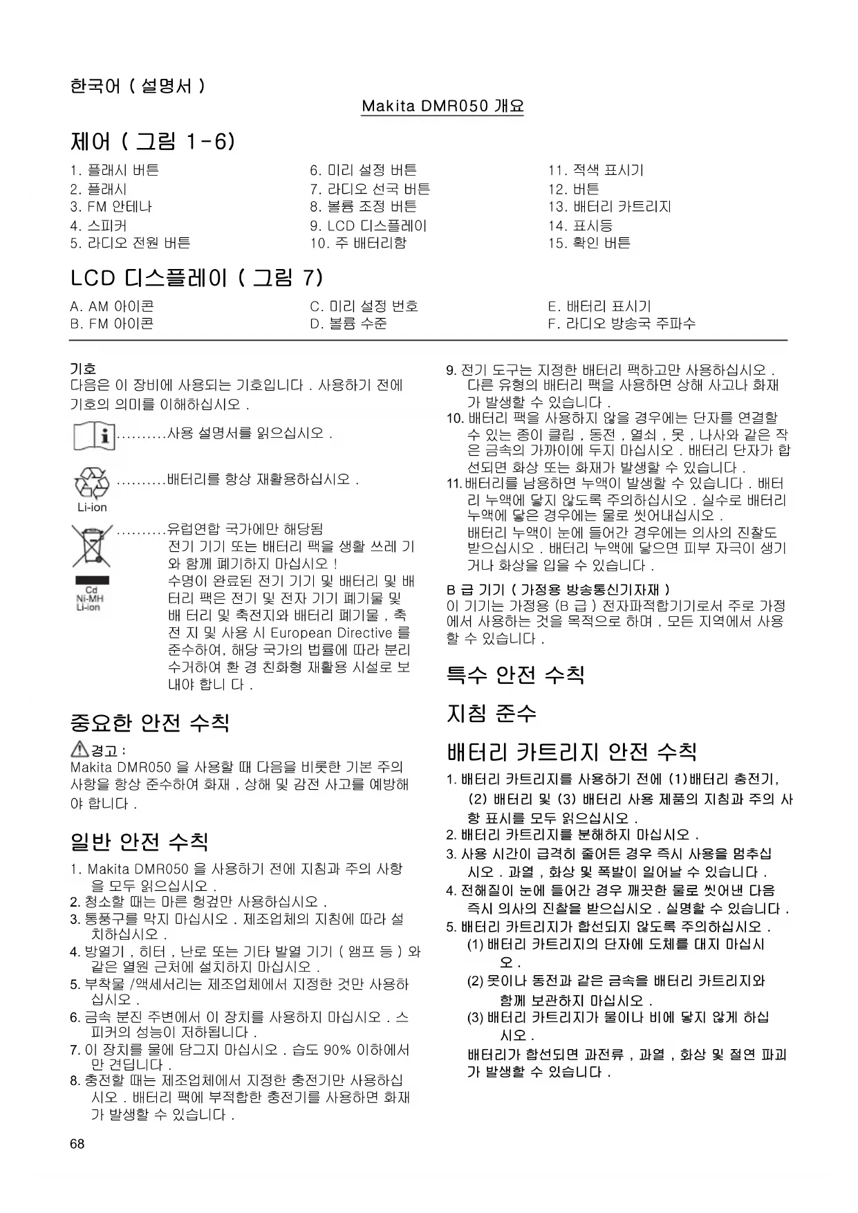 1. Makita DMR050 을 사용하기 전에 지침과 주의 사항