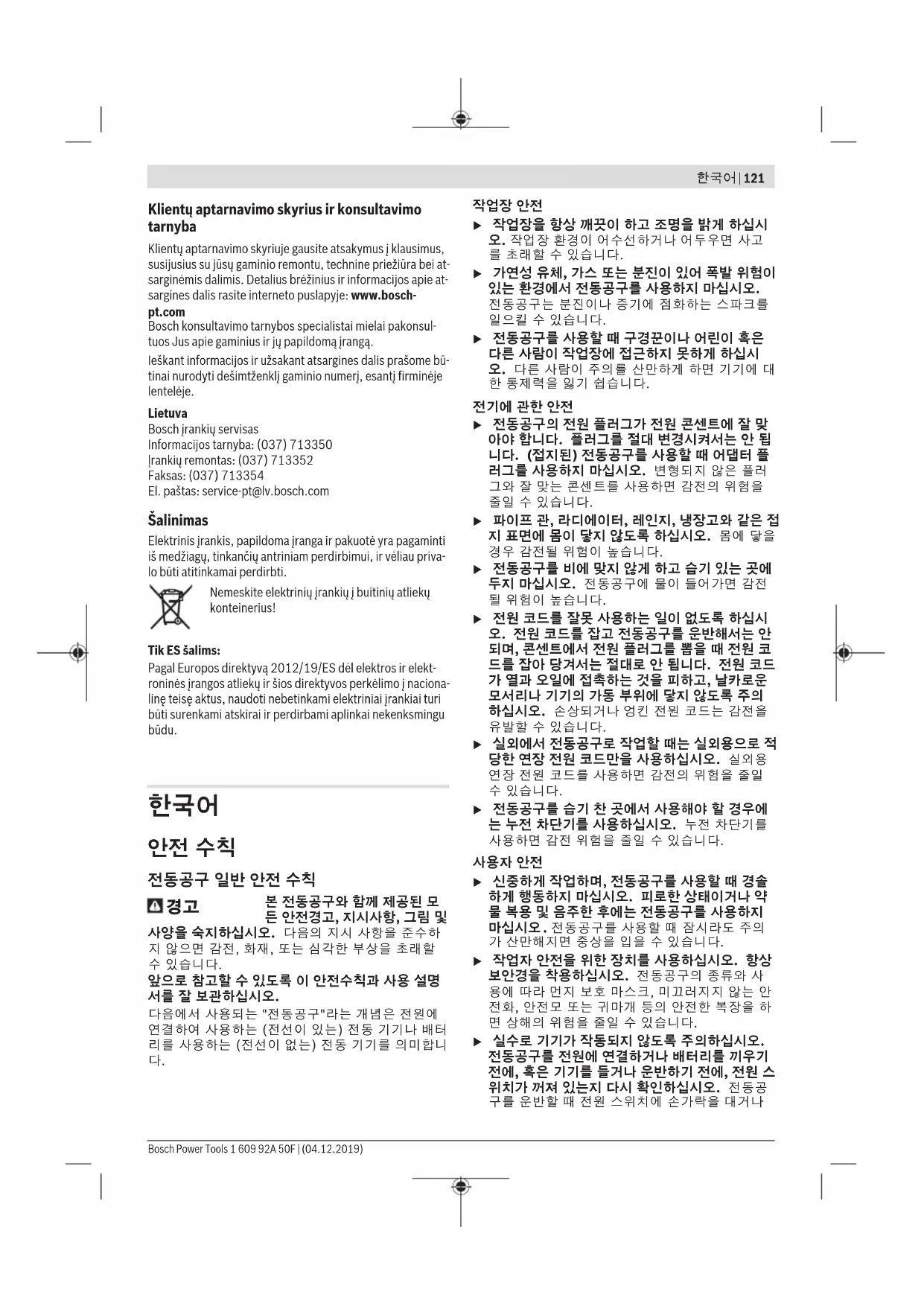 u 전동공구 수리는 반드시 전문 인력에게 맡기고 , 수리 정비 시 보쉬 순정 부품만을 사용하십시오. 그렇게 함으로써 기기의 안전성을 오래 유지할