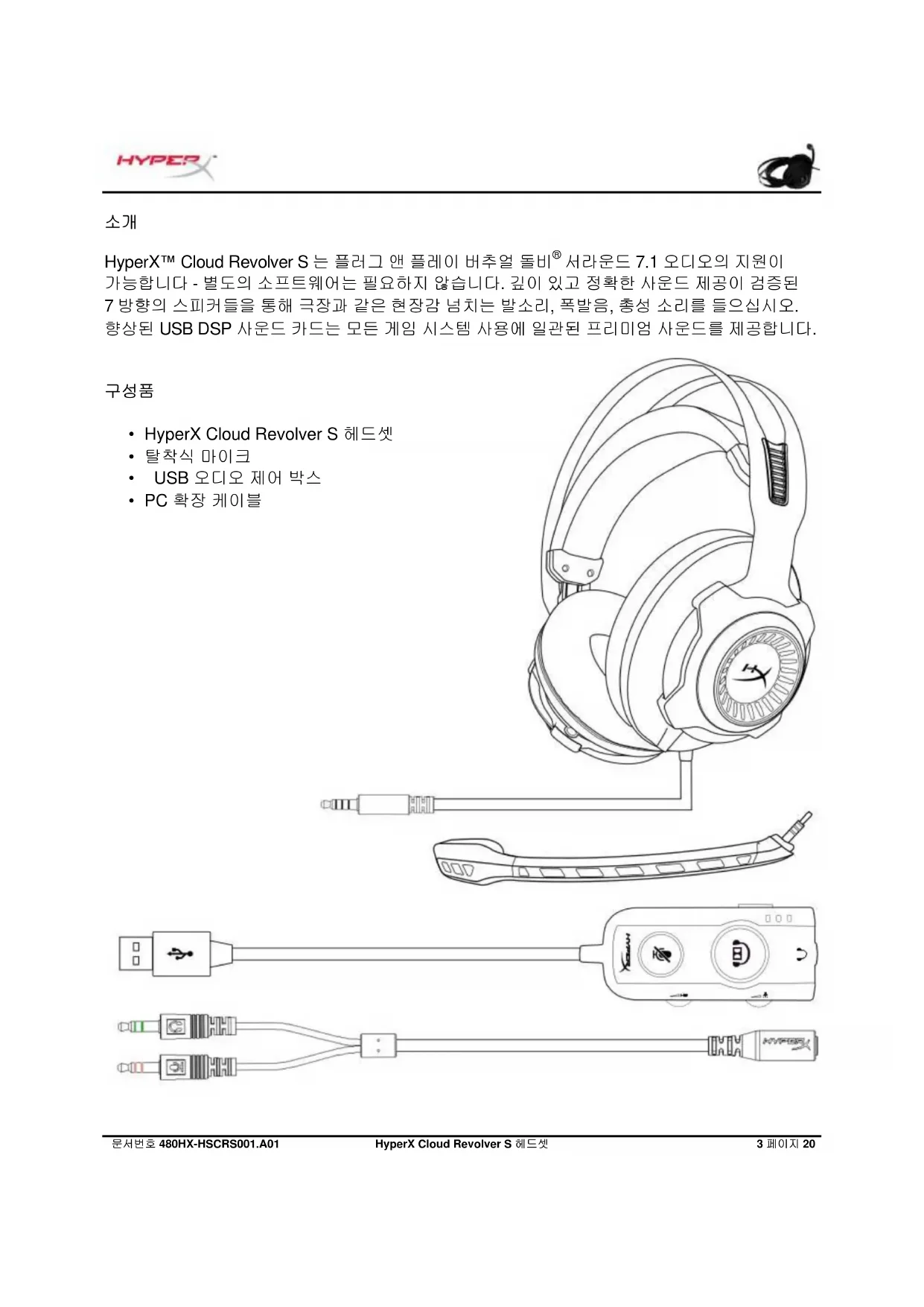 - PC 확장 케이블문서번호 480HX-HSCRS001.A01 HyperX Cloud Revolver S 헤드셋 4 페이지 20