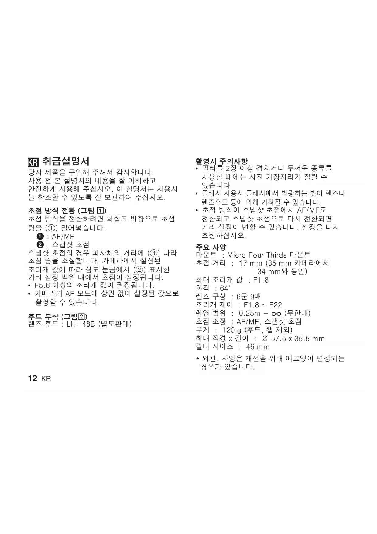 기기 설명서 다운로드 렌즈 무료 PDF 형식! 매뉴얼 찾기 17mm f1.8 - OLYMPUS 전자 기기를 다시 손에 넣으세요. 이 페이지에는 기기 사용에 필요한 모든 문서가 게시되어 있습니다. 17mm f1.8 브랜드 OLYMPUS.