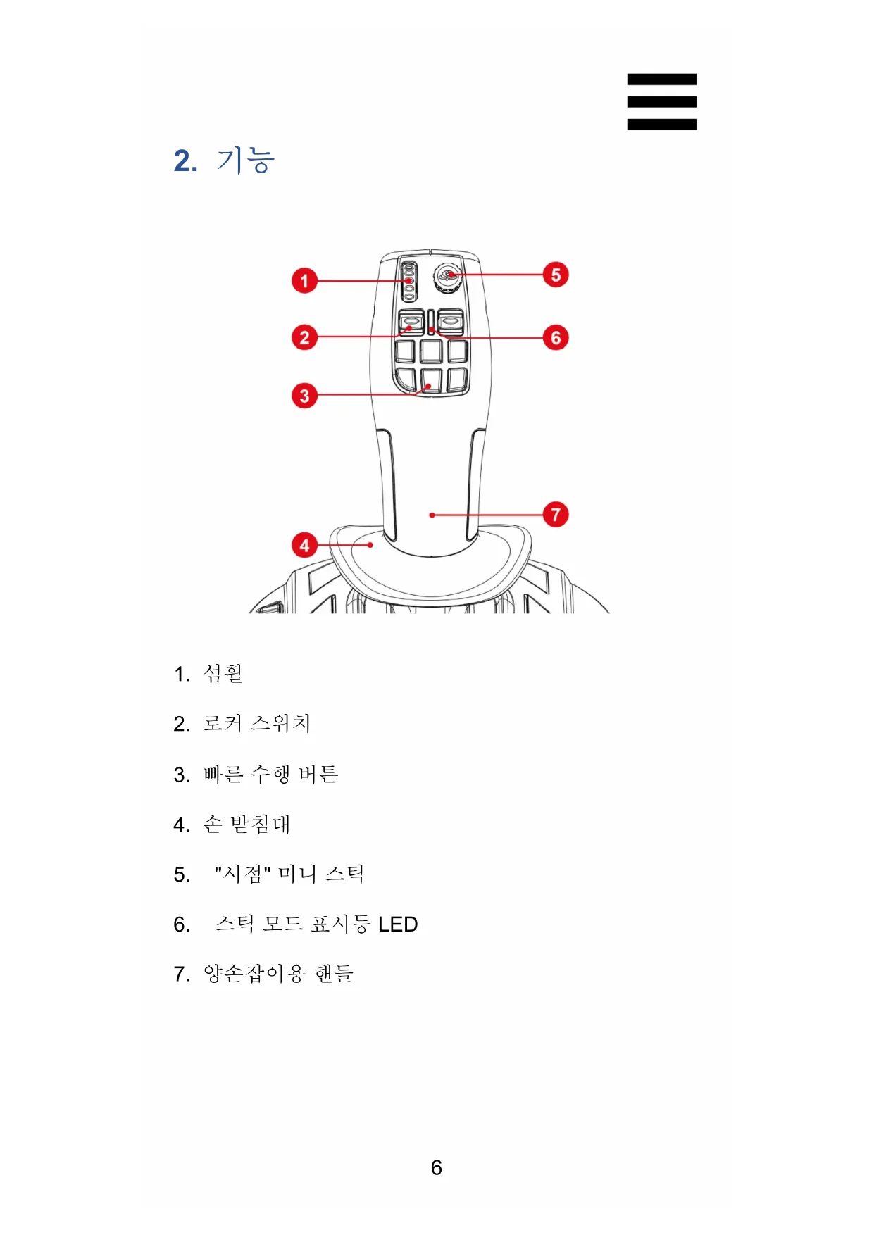 − 미니스틱, 조이스틱 핸들 회전, 스로틀을 포함한 6 개