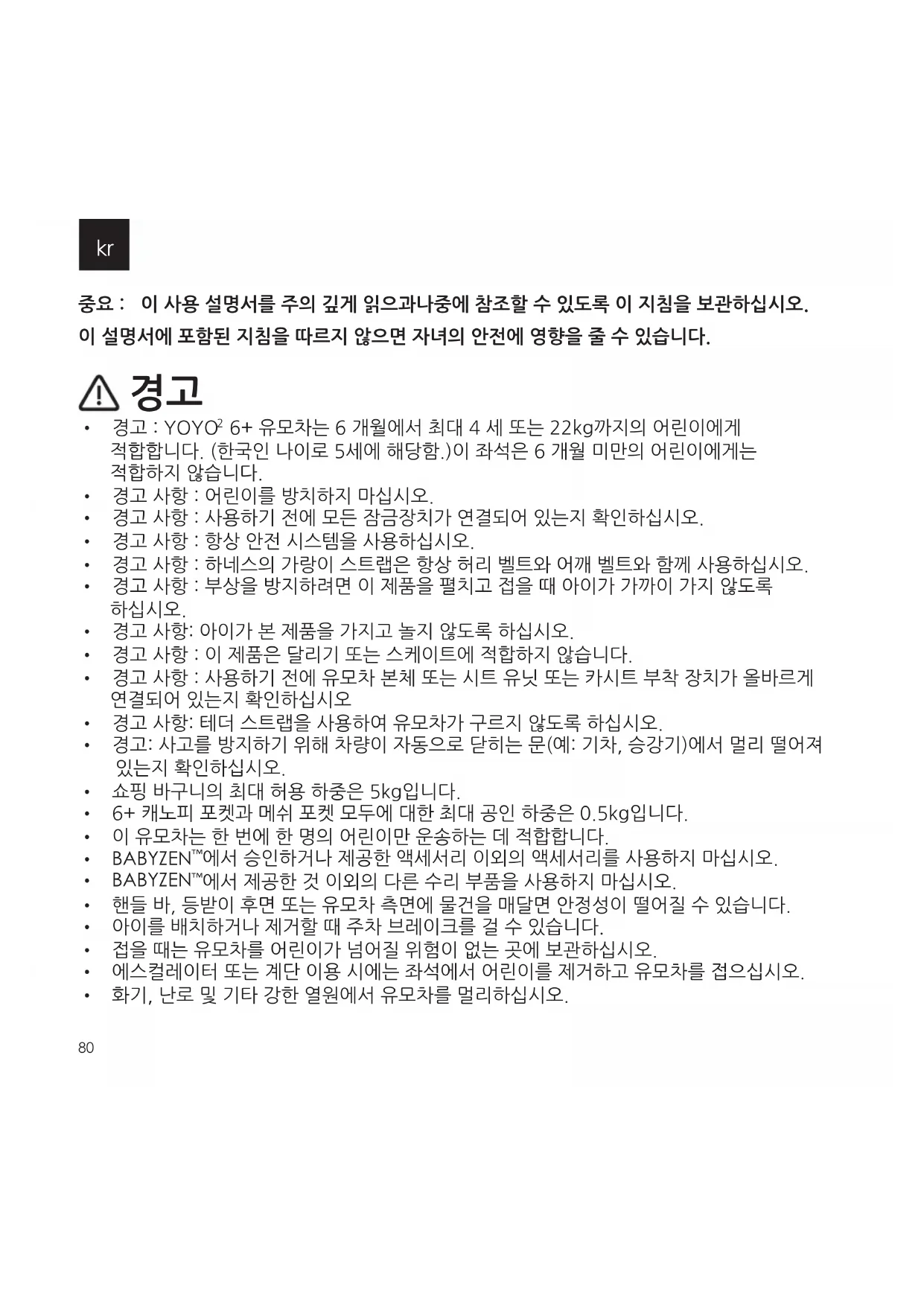 79kr 중요 : 이 사용 설명서를 주의 깊게 읽으과나중에 참조할 수 있도록 이 지침을 보관하십시오. 이 설명서에 포함된 지침을 따르지 않으면 자녀의 안전에 영향을 줄 수 있습니다.