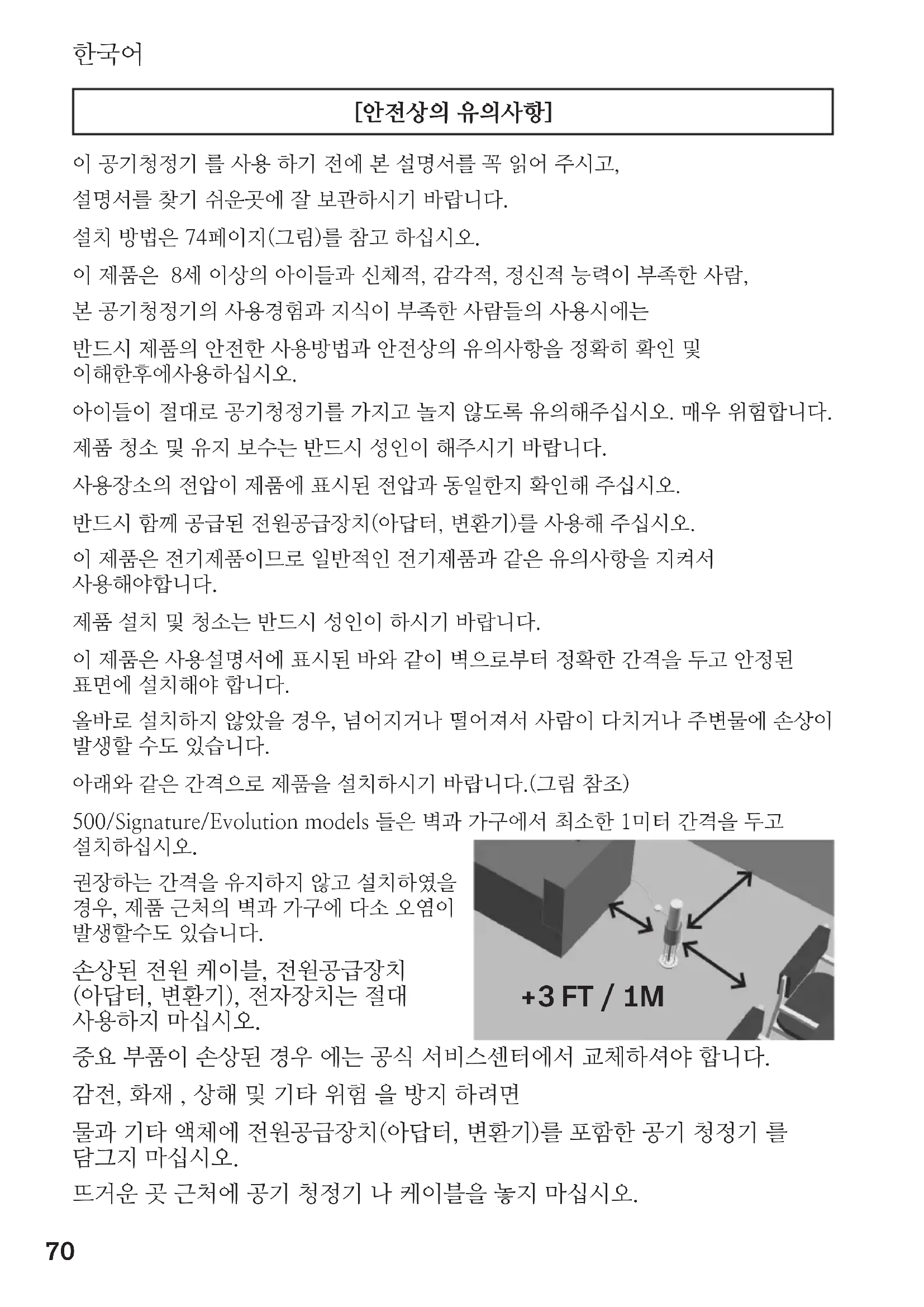 뜨거운 곳 근처에 공기 청정기 나 케이블을 놓지 마십시오. +3 FT / 1M 한국어71