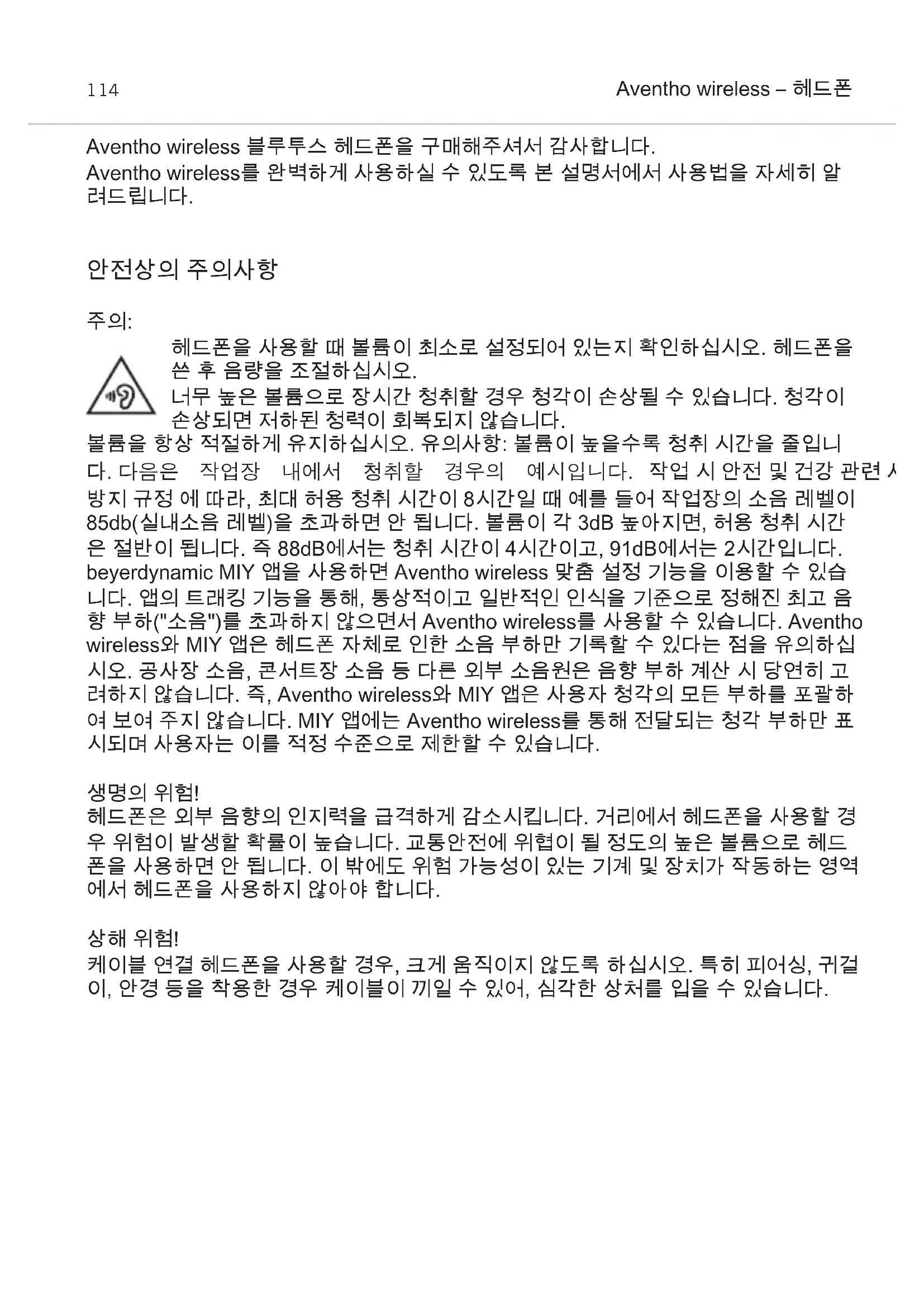 - 웹사이트 www.beyerdynamic.com에서 현재 보증 규정을 확인하십시오.한국어 Aventho wireless – 헤드폰