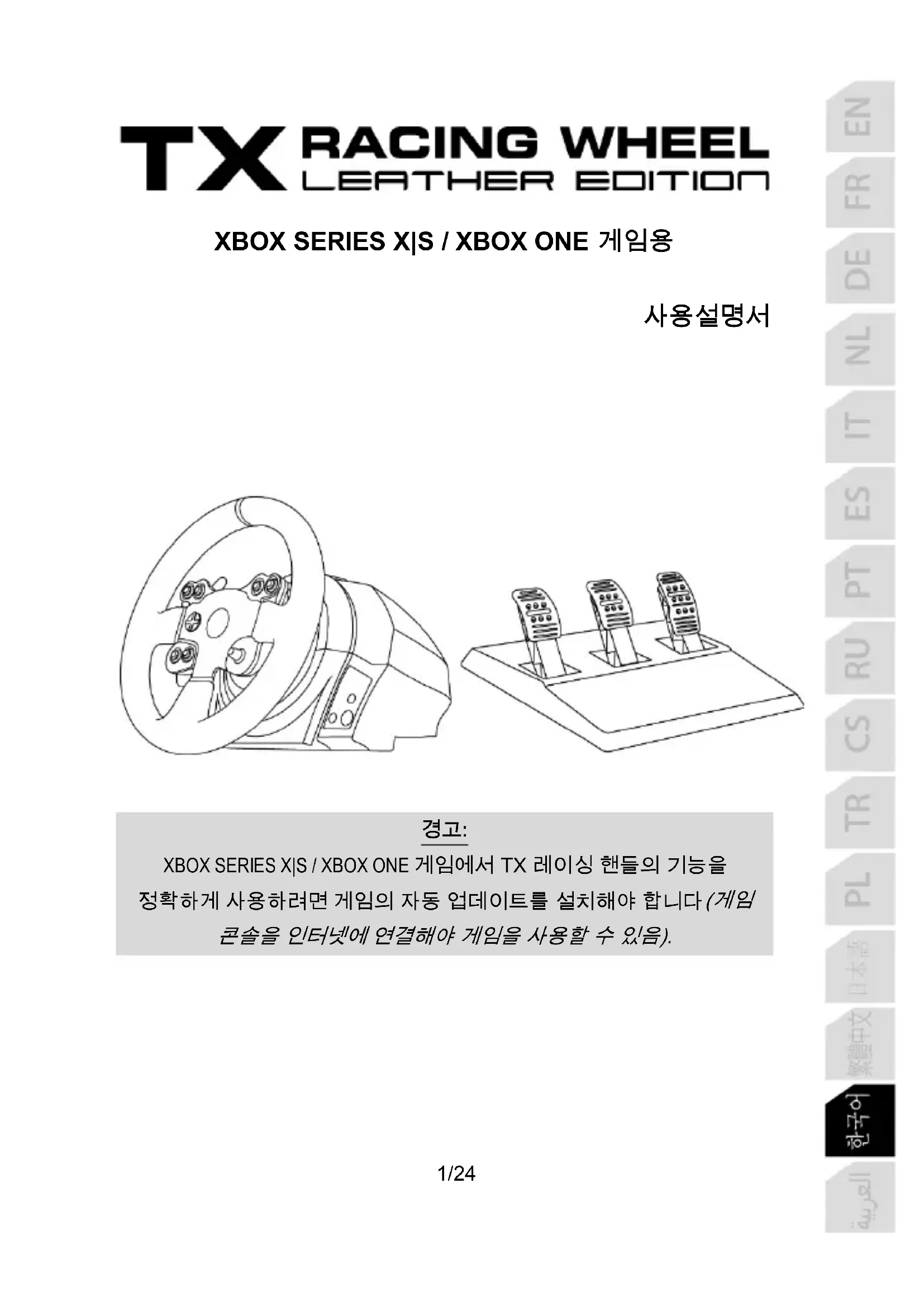 XBOX SERIES X|S / XBOX ONE 게임에서 TX 레이싱 핸들의 기능을 정확하게 사용하려면 게임의 자동 업데이트를 설치해야 합니다