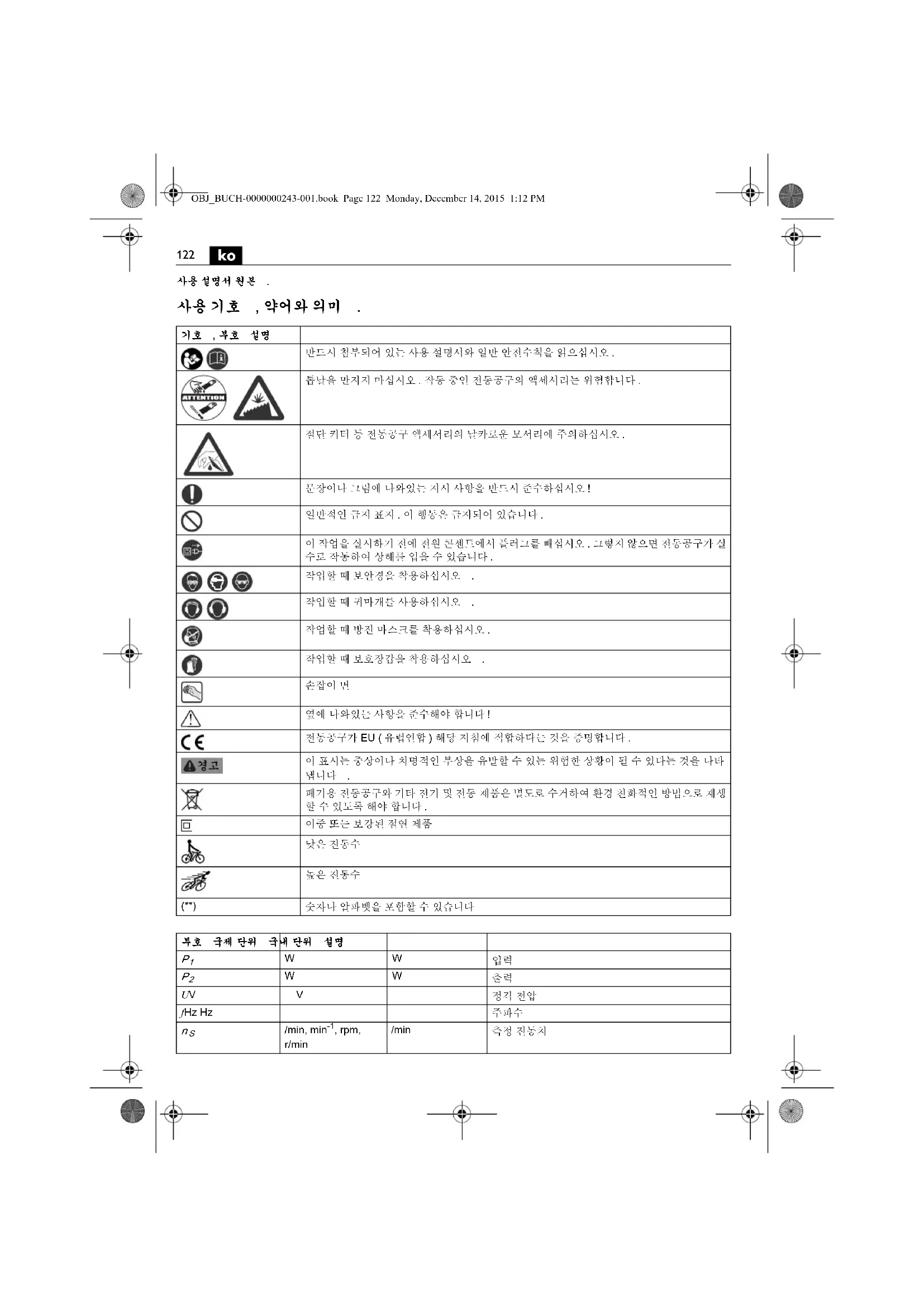사용 설명서 원본 . 사용 기호 , 약어와 의미 .