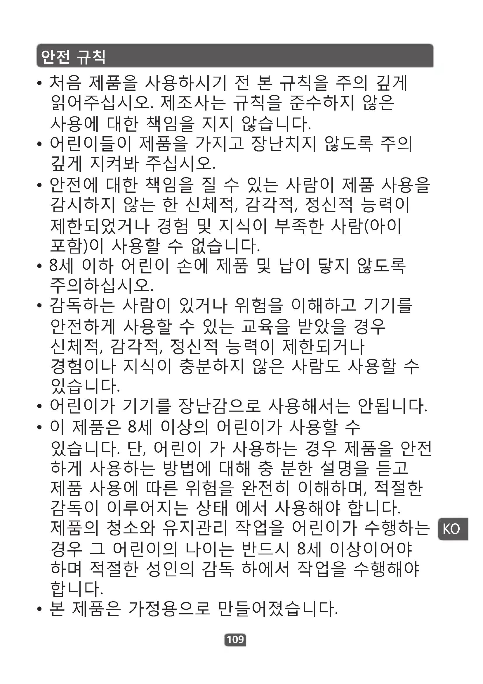 - 어린이가기기를장난감으로사용해서는안됩니다. KO110