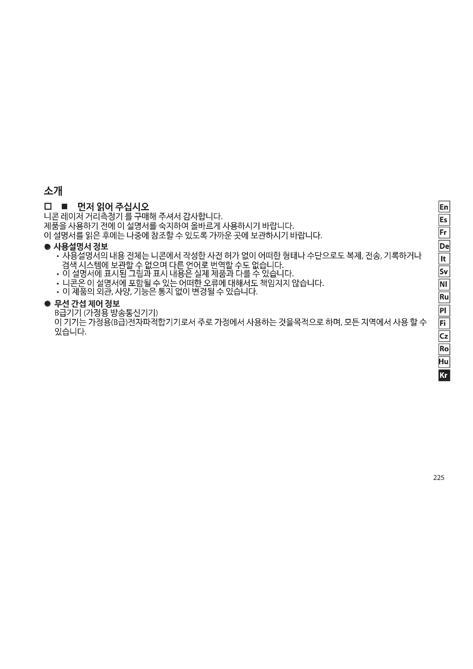 니콘 레이저 거리측정기 를 구매해 주셔서 감사합니다. 제품을 사용하기 전에 이 설명서를 숙지하여 올바르게 사용하시기 바랍니다. 이 설명서를 읽은 후에는 나중에 참조할 수 있도록 가까운 곳에 보관하시기 바랍니다. l 사용설명서 정보