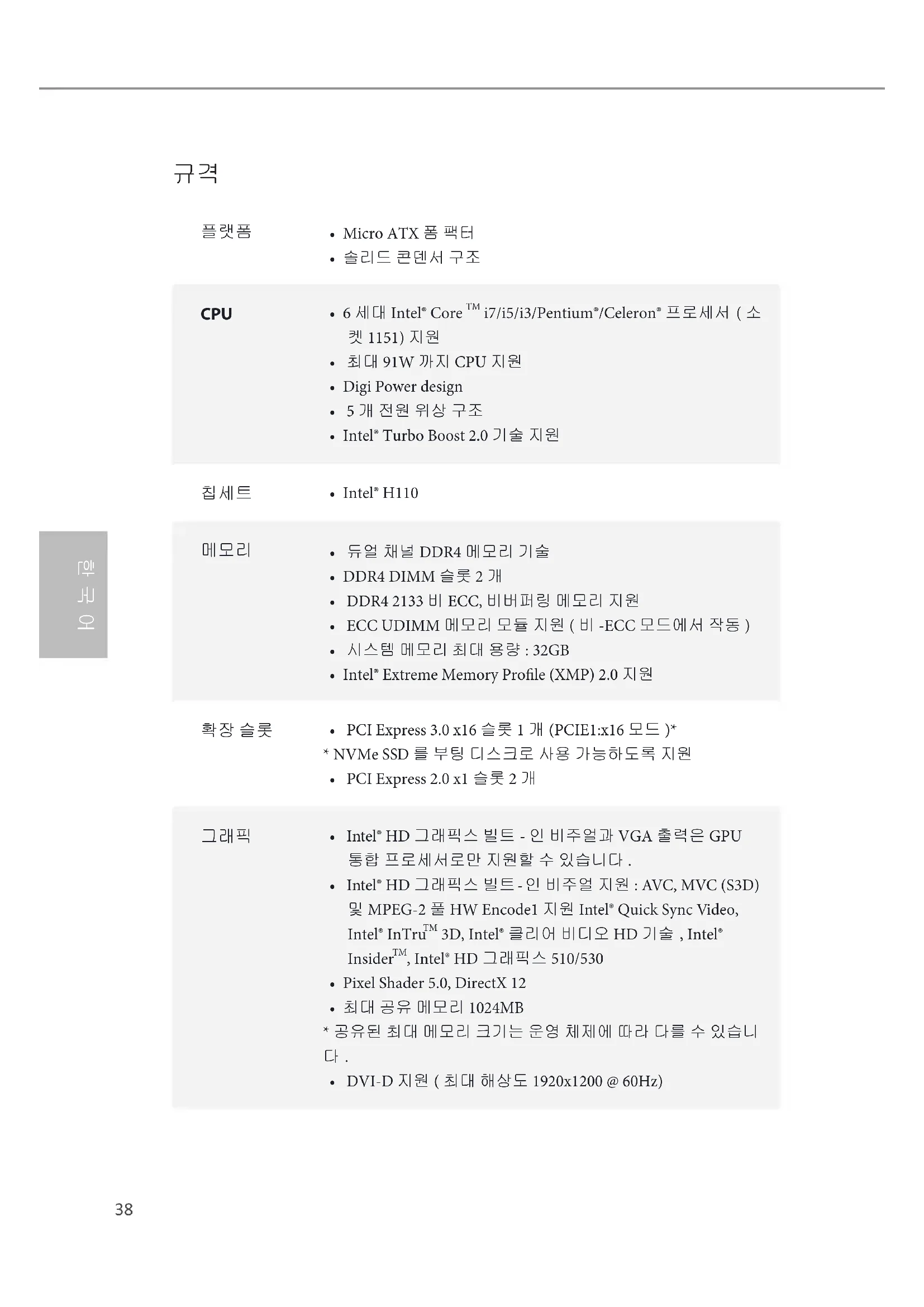 - DVI-D 지원 ( 최대 해상도 1920x1200 @ 60Hz)39