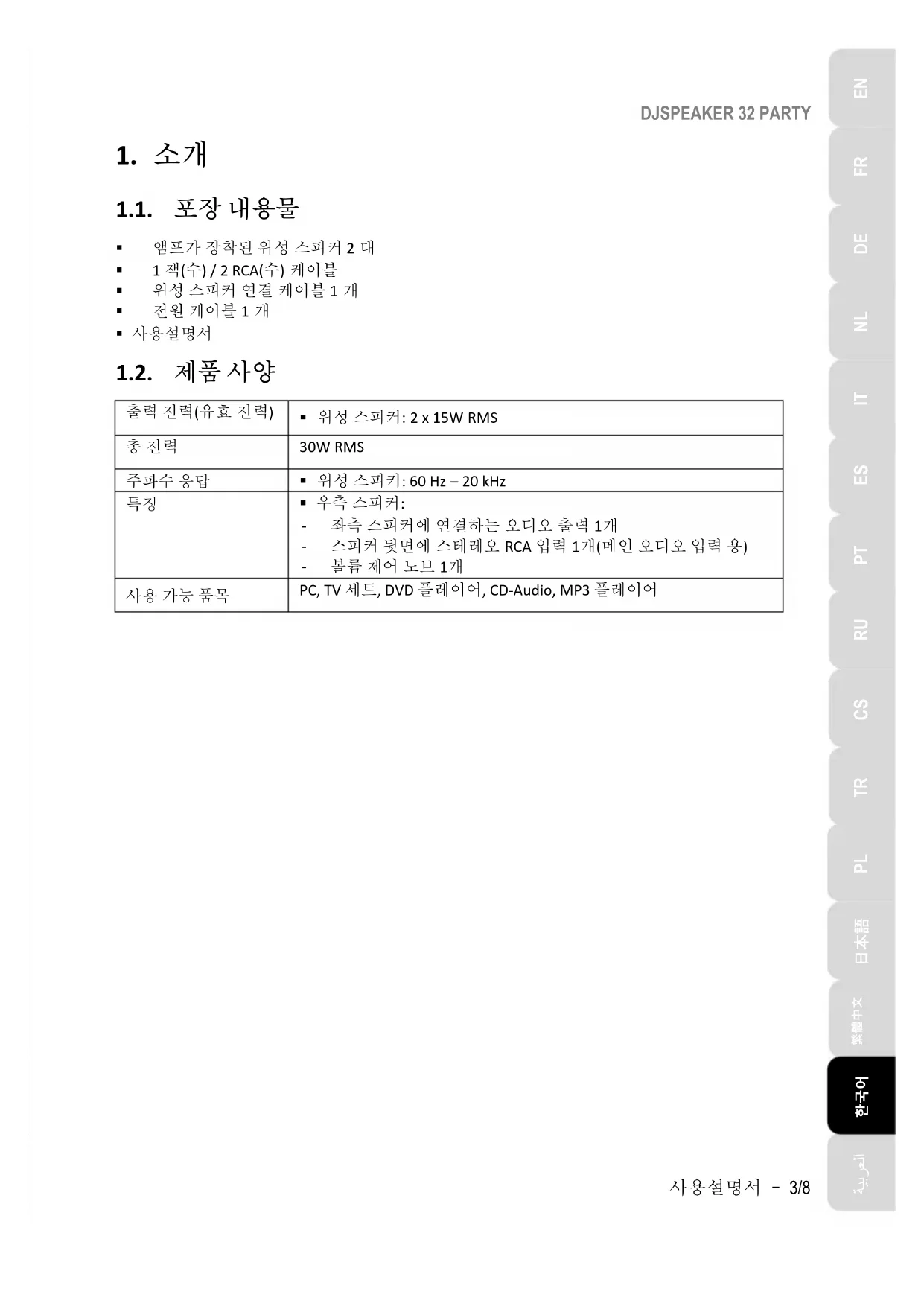 한국어DJSPEAKER 32 PARTY 2/8 - 사용설명서